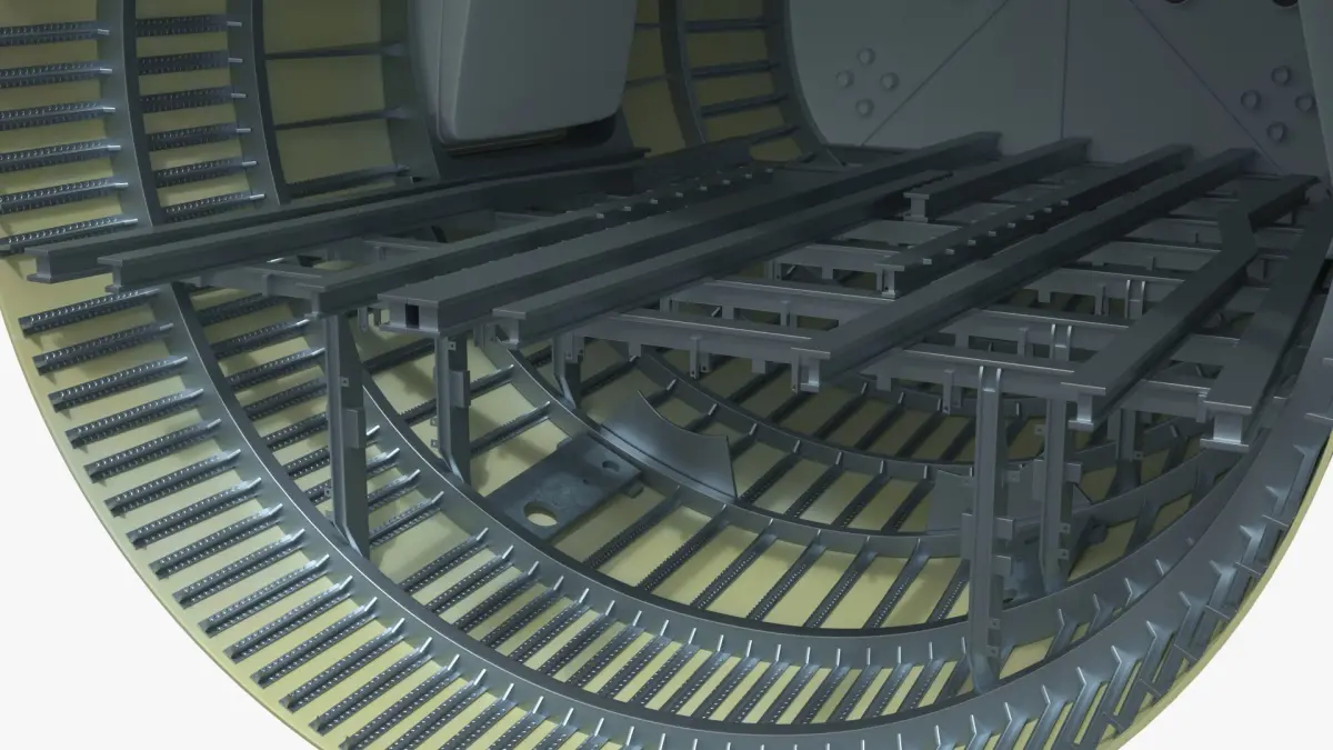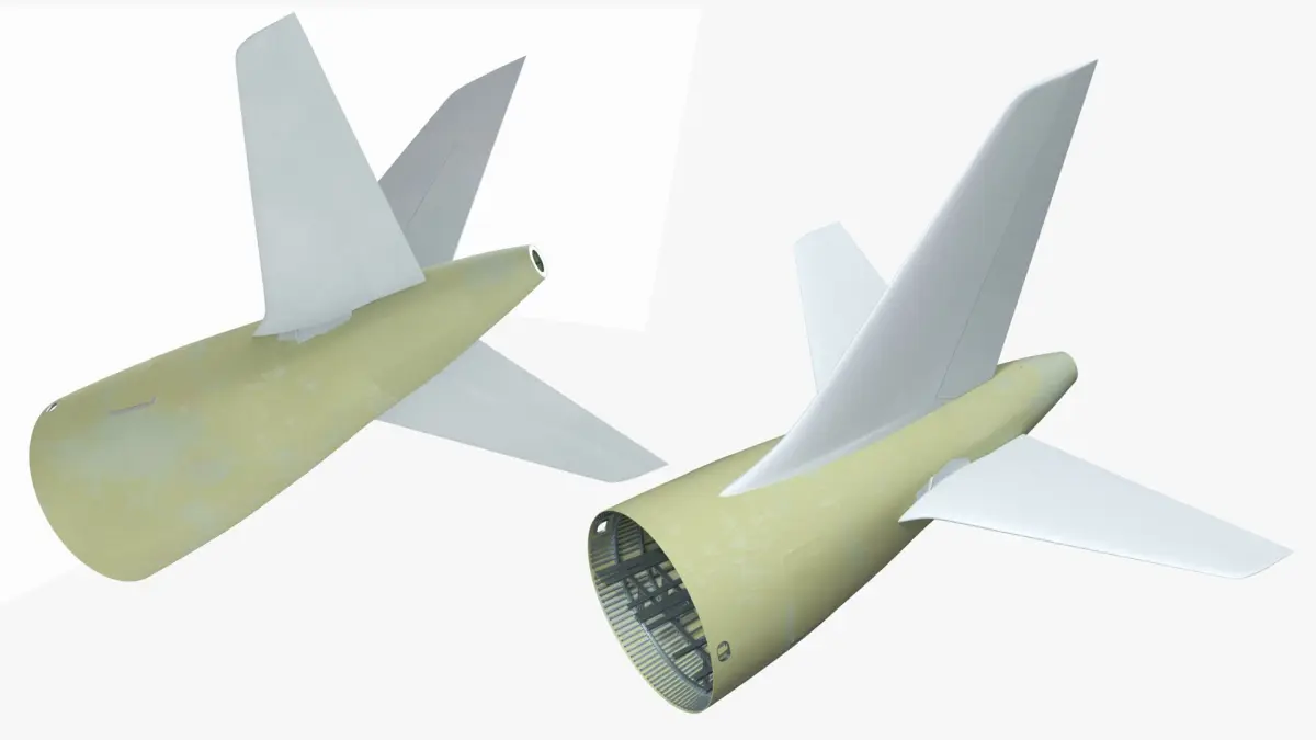 This model showcases a detailed representation of the tail section, including the vertical stabilizer (fin) and horizontal stabilizer (tailplane). The interior view reveals structural elements and attachment points, illustrating the precision and complexity involved in aircraft design. The tail section is crucial for maintaining aerodynamic balance and enabling directional control during flight.