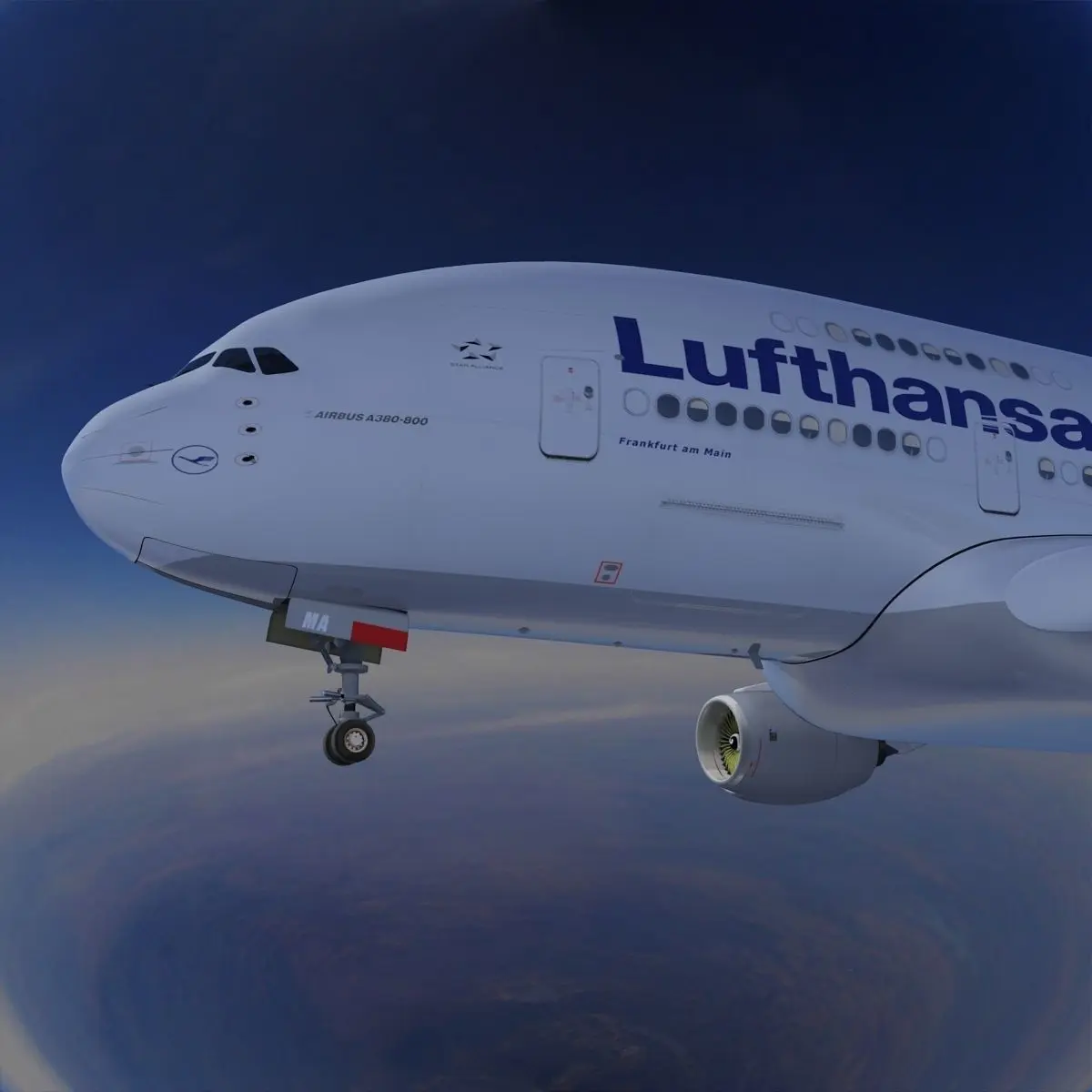 Very accurate A380 LUFTHANSA.High details exterior. All can be animated, landing gear, flap, aleiron, rudder, elevator and all surface.Modeled in 3D studio max, rendered in Vray. Include .max default scanline version and all high-resolution textures. Include HDRI texture too.Diffuse map: JPEGNormal map: TGA.3ds file:Vertices:253000Faces:428000