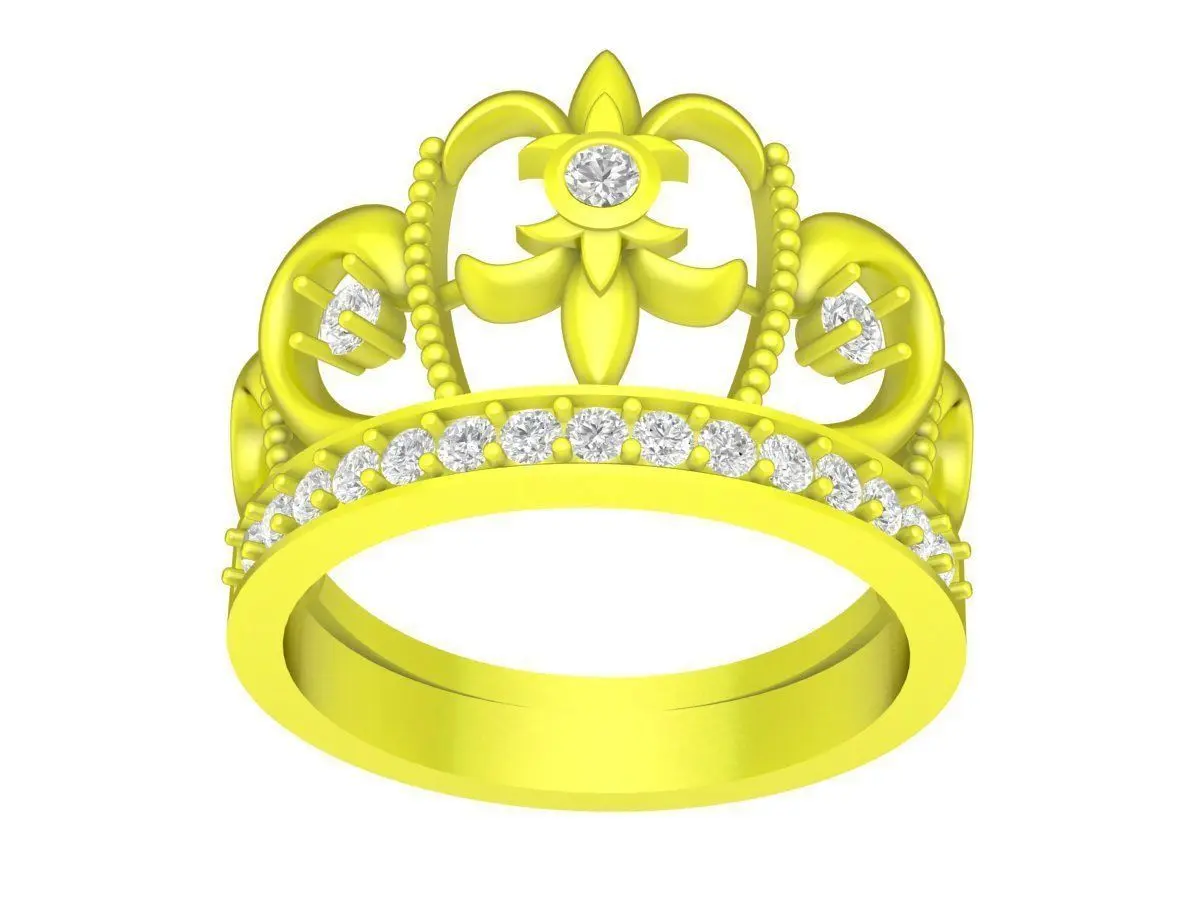 High quality 3D model of diamond crown ring featuring a regal crown inspired design with sparkling diamonds symbolizing royalty elegance and prestige perfect for jewelry design 3D printing cad projects and professional jewelry manufacturing ideal for fashion women collections statement accessories and luxury custom rings.