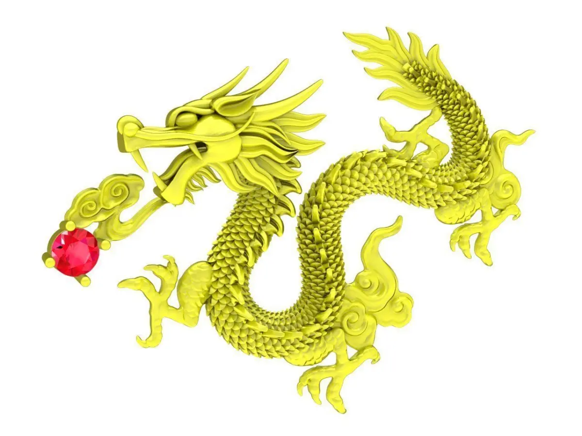 A powerful Chinese dragon design adorned with sparkling diamonds, symbolizing strength, prosperity, and protection. Perfect for pendants, rings, or statement jewelry inspired by Asian mythology. The model is finely detailed and fully optimized, ready for high-quality 3D printing and professional jewelry production.