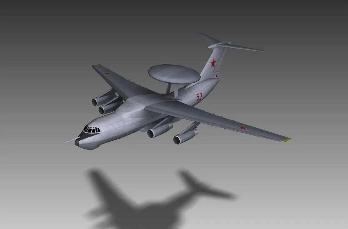 Low polygon model of the A-50 Mainstay. This model is used by some of the air forces simulators. A lot of emphasis has been made to find the correct reference material. The model's shape has been verified to have the correct shape for aircraft recognition training. Pictures are taken within the simulation world. Contains LOD's (Level-Of-Details)