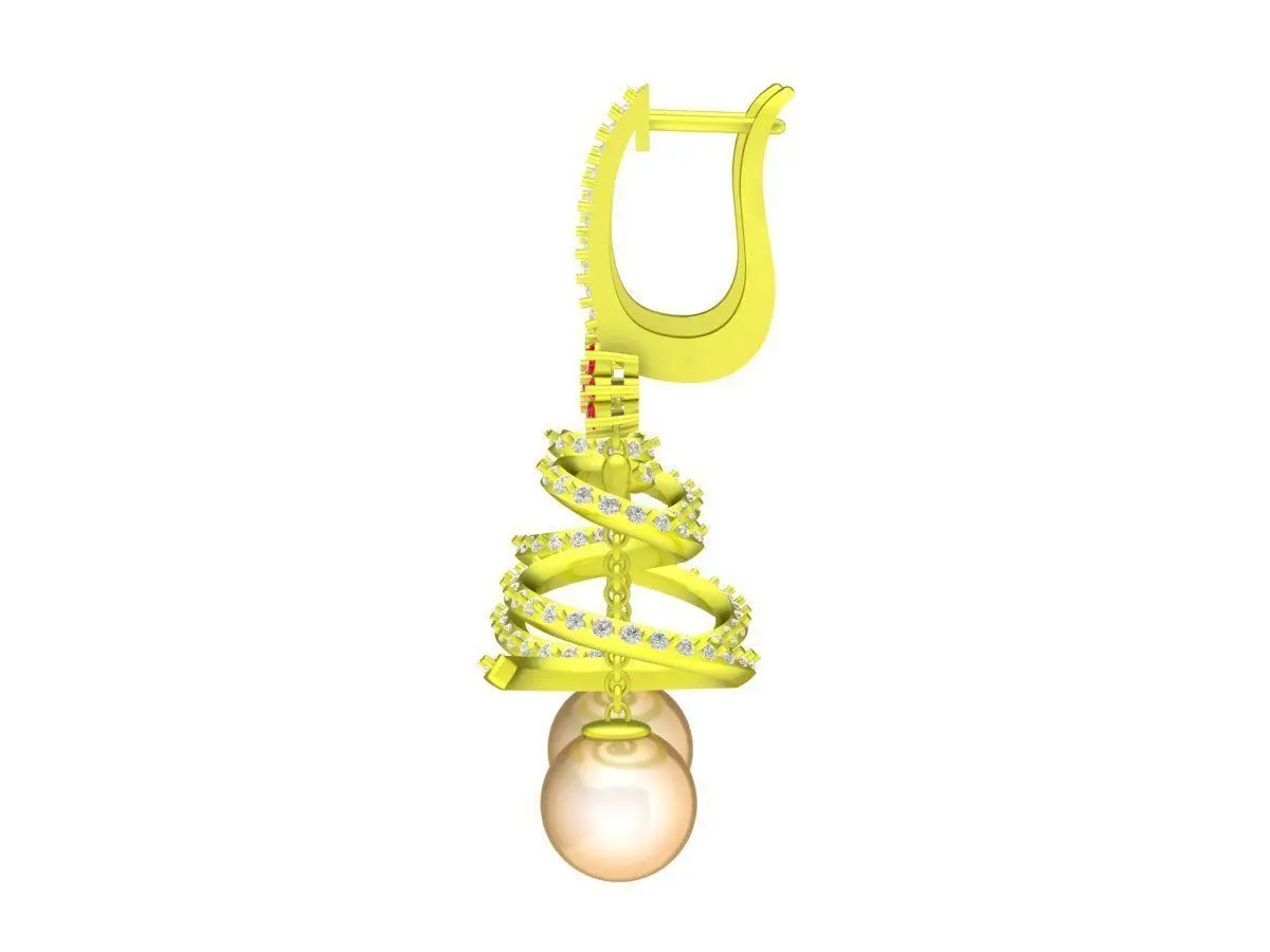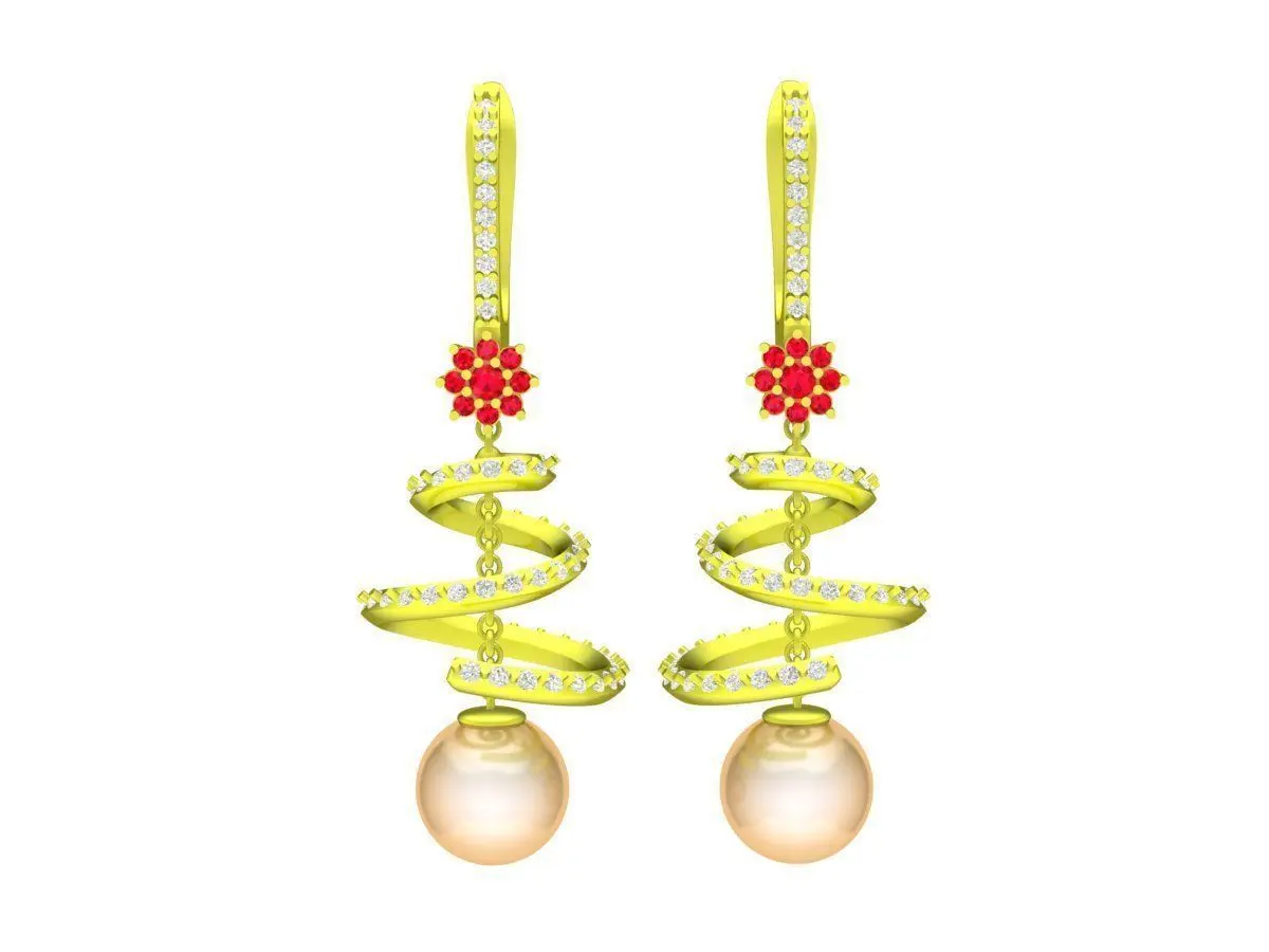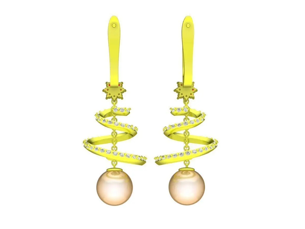 High quality 3D model of luxury korean style diamond flower pearl earrings designed for jewelry making and 3D printing featuring sparkling diamonds with elegant flower and natural pearl combination perfect for parties weddings daily wear and luxury collections easy to resize and customize ideal for professional jewelers cad projects and jewelry manufacturers