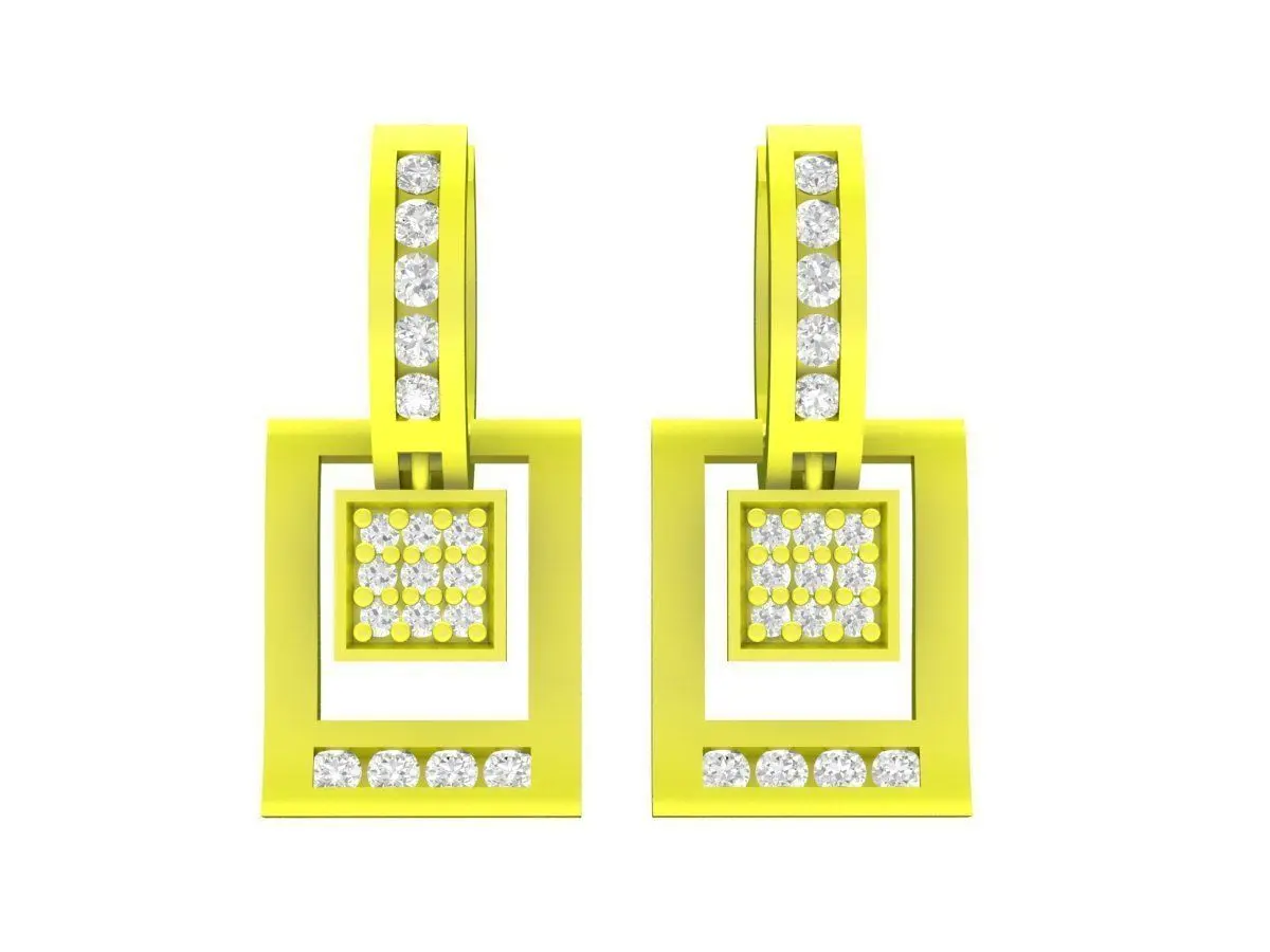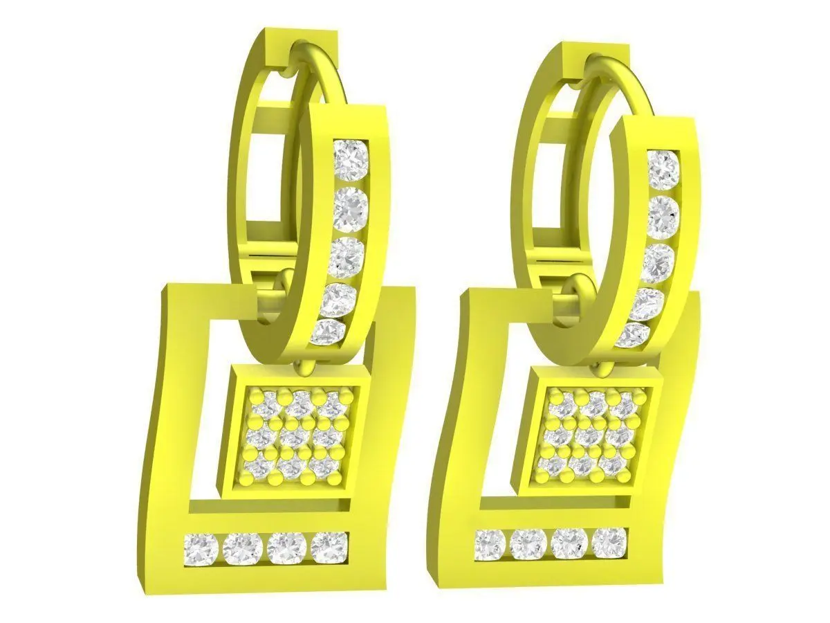 High quality 3D model of luxury Korean style diamond drop hoop earrings featuring elegant sparkling diamonds with modern fashion design perfect for daily wear parties weddings and luxury jewelry collections easy to resize and customize suitable for 3d printing cad projects professional jewelers and jewelry manufacturers