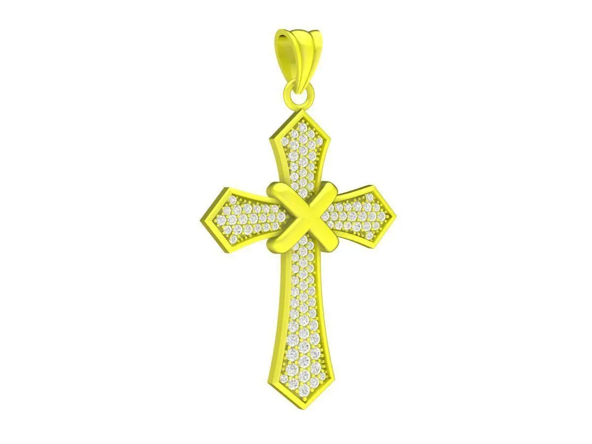 High quality 3d model of luxury diamond cross pendant designed with elegant and timeless style featuring sparkling diamonds perfect for religious jewelry fashion accessories and fine jewelry collections suitable for cad design 3d printing and professional jewelry manufacturing easy to customize for jewelers and designers
