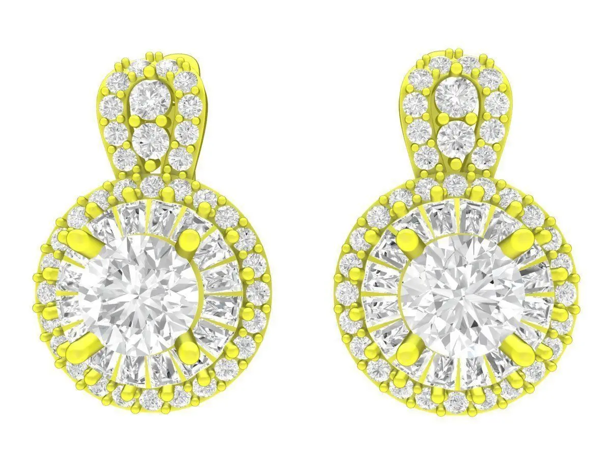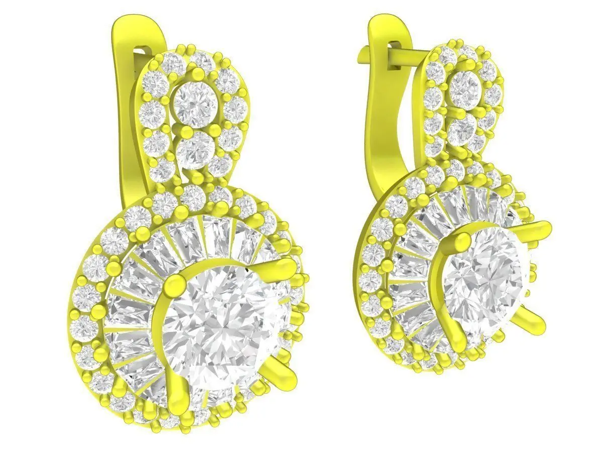 High quality 3D model of baguette diamond halo hoop earrings designed for jewelry making and 3D printing featuring sparkling baguette diamonds in a halo setting with elegant hoop design perfect for daily wear, parties, and luxury collections easy to resize and customize ideal for professional jewelers, cad projects, and jewelry manufacturers