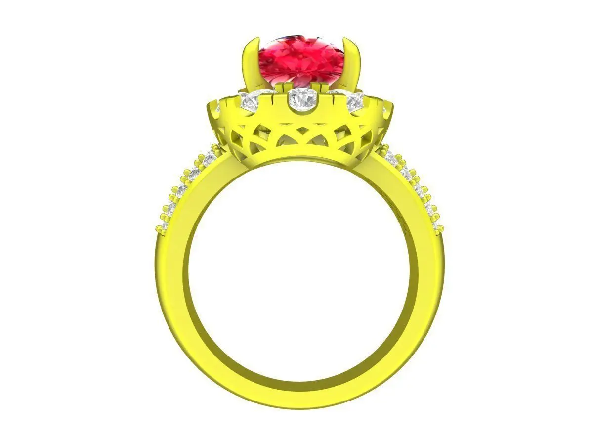 Elegant 3D model of oval ruby diamond women fashion ring designed for jewelry making and 3D printing stylish design featuring an oval ruby gemstone with sparkling diamond details easy to resize and customize suitable for professional jewelers and luxury women’s jewelry collections perfect choice for modern and fashionable ruby diamond ring projects