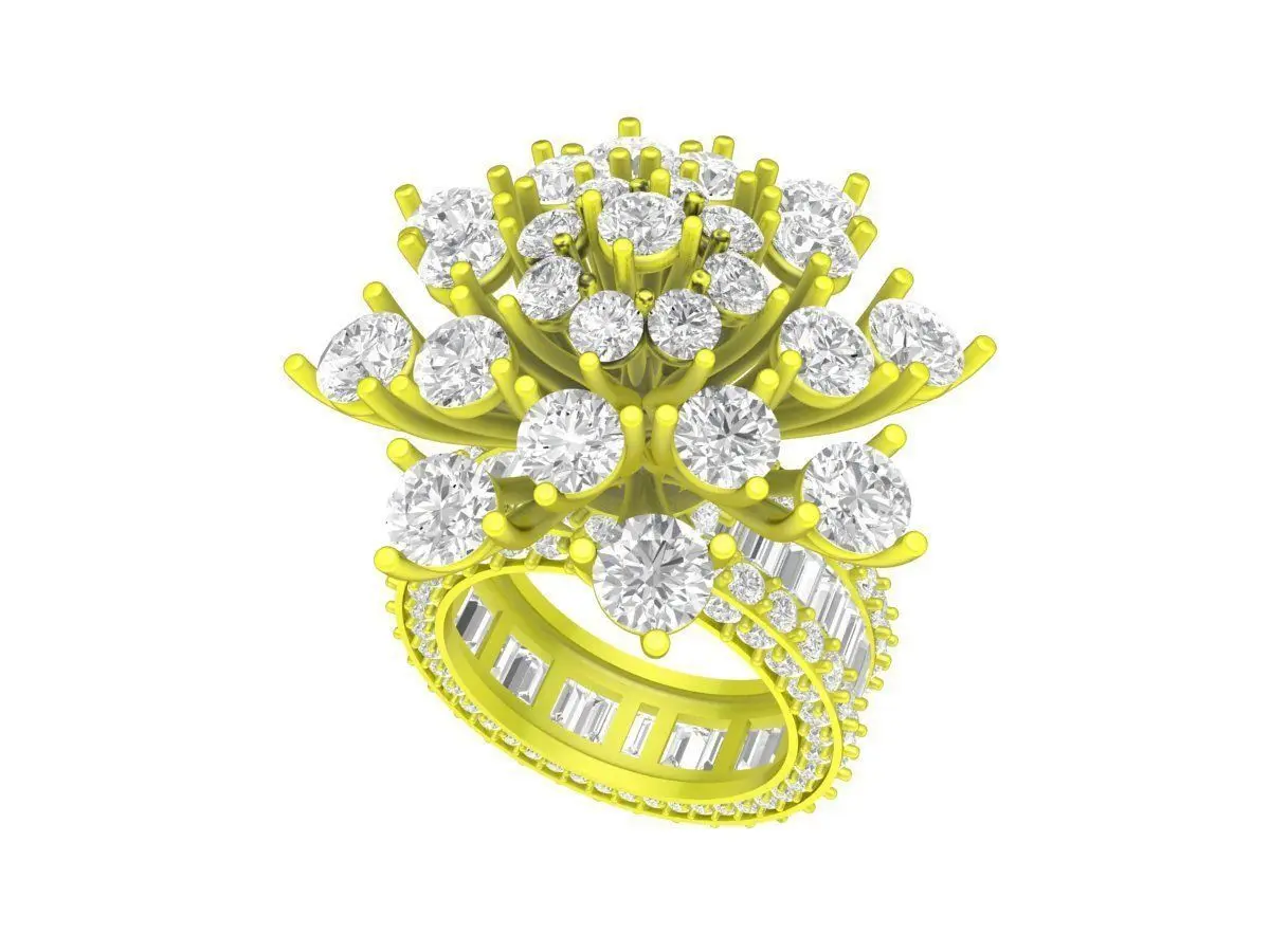 High quality 3D model of hongkong style luxury diamond women ring designed for jewelry making and 3D printing featuring elegant design with sparkling diamonds suitable for engagement wedding fashion collections and custom cad jewelry projects perfect for daily wear or luxury gift ideas