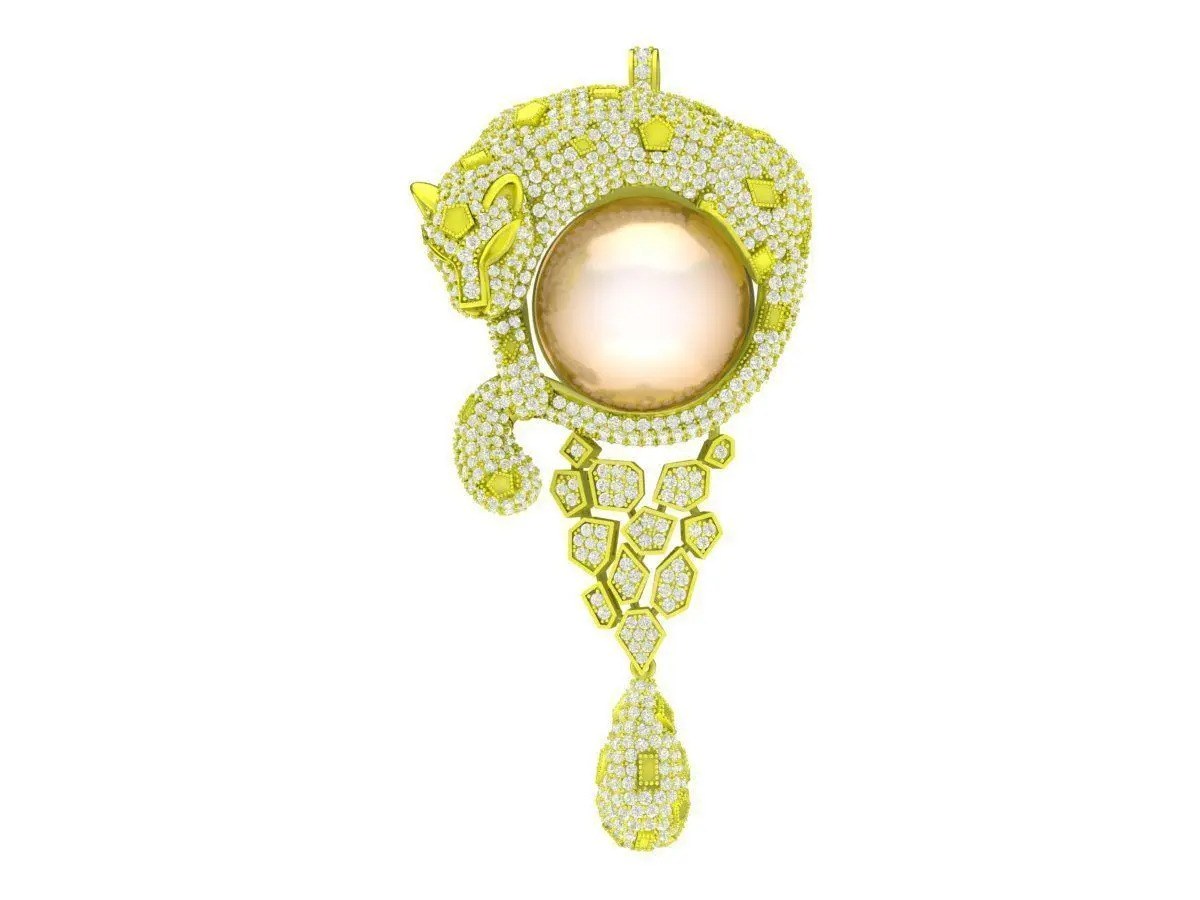 Exclusive 3D model of luxury diamond and pearl jaguar pendant designed for jewelry making and 3D printing elegant design with detailed stone settings and artistic jaguar shape easy to resize and customize suitable for professional jewelers and high end jewelry projects perfect choice for unique and fashionable pendant collections