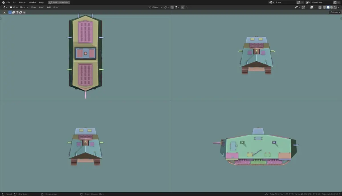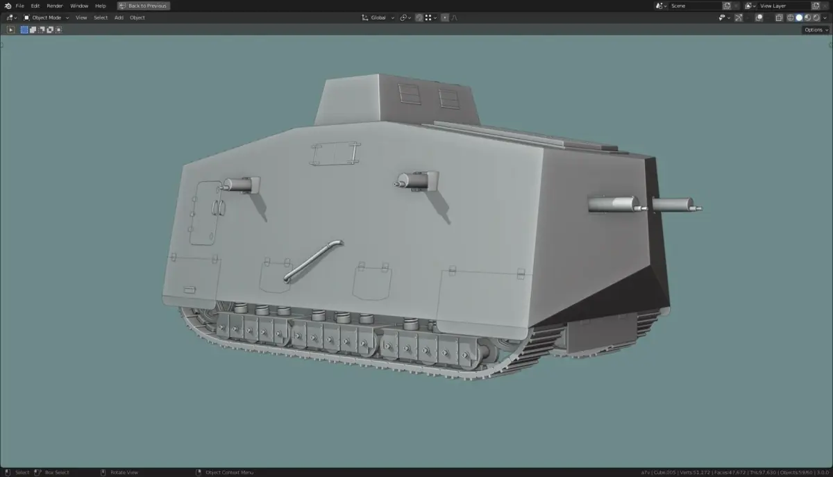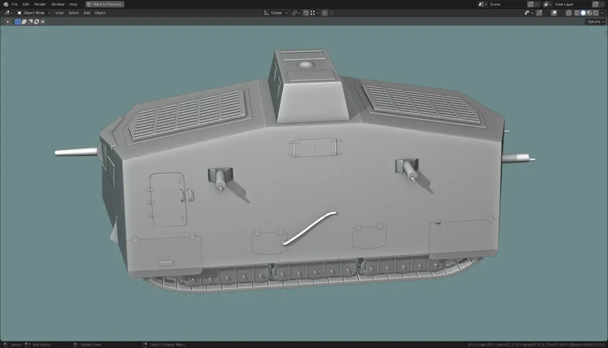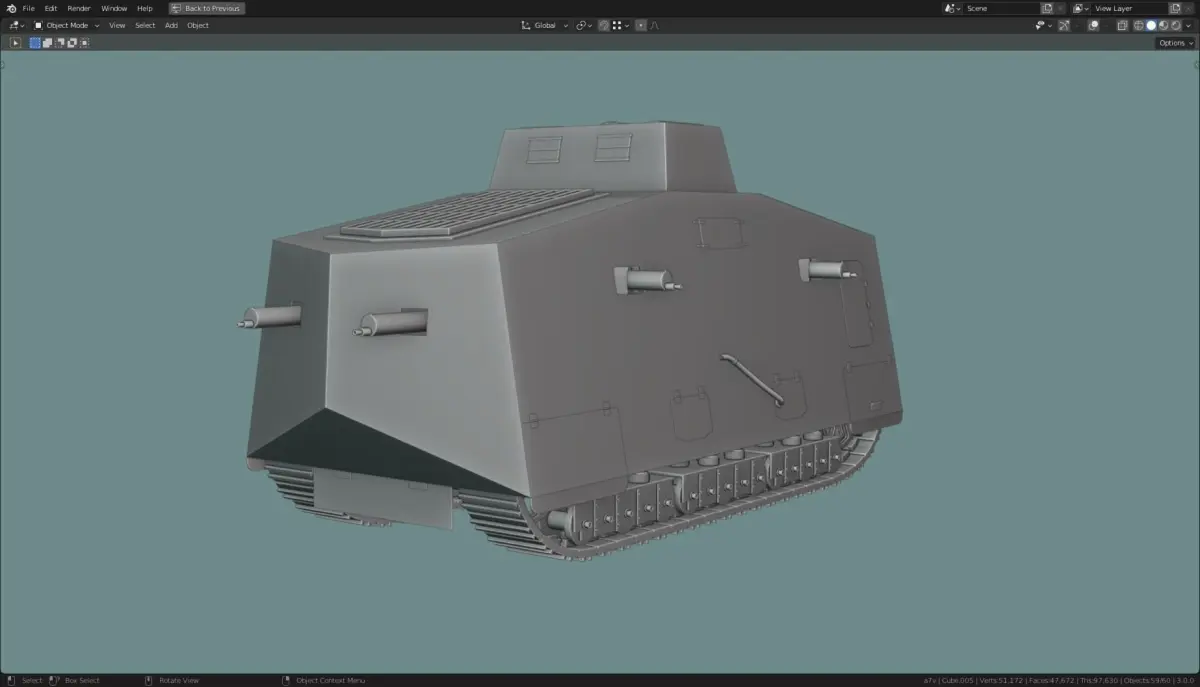 Model is made in Blender 3.0. it is a base mesh model. Made to scale, Blender units. Part of a larger collection of base mesh tanks.