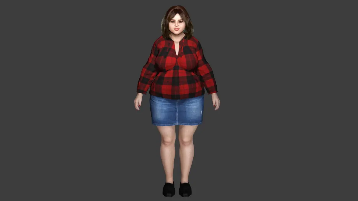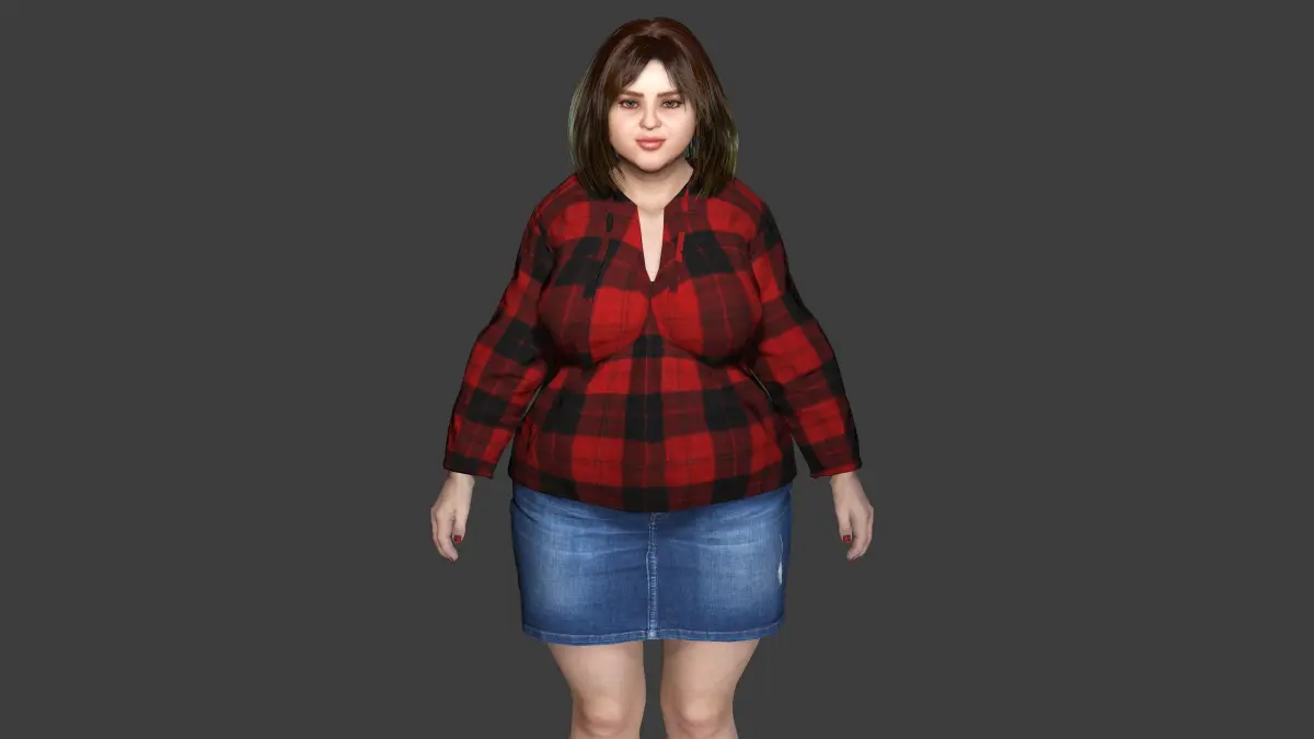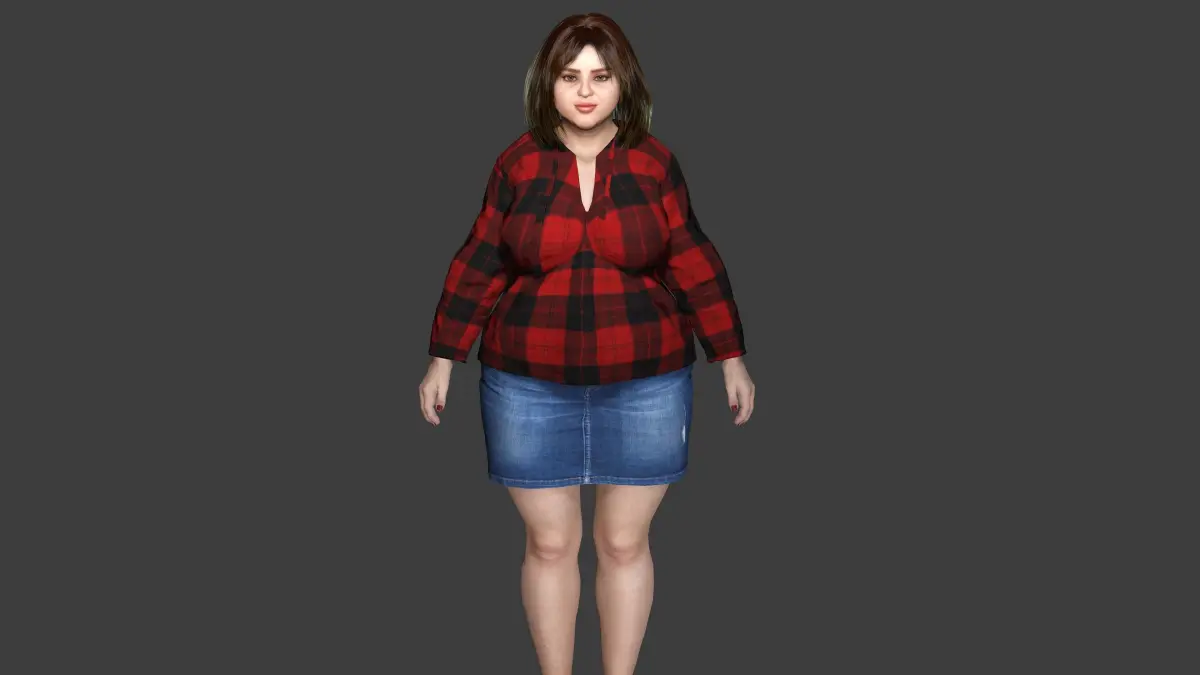 Beautiful FAT Female Character, Fat Chubby face, Straight hair, Dark Brown hair, Light Skin, Brown Eyes, Fat Body Type