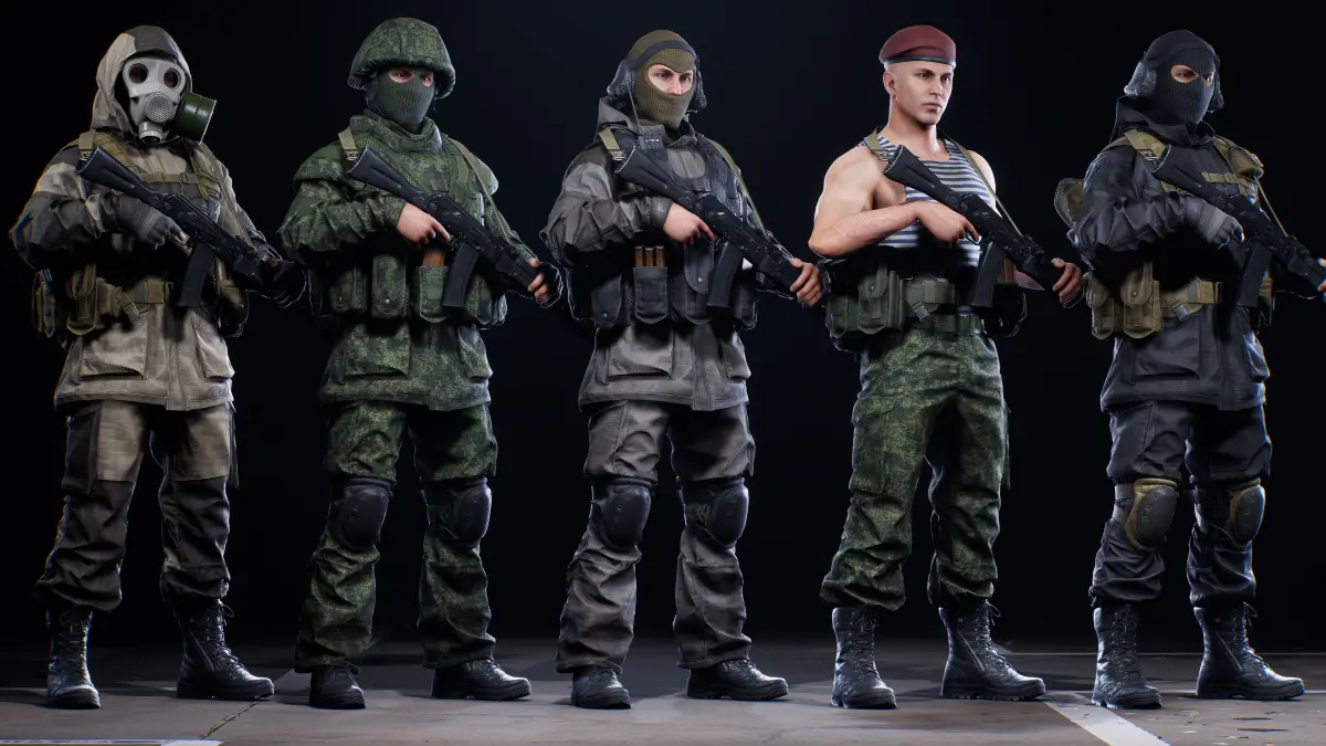 The flexible and deep modularity of this soldier pack helps you to create a big various squad of soldiers from different countries. There is a smart material system to help customize each soldier in a unique way by materials and flexible customization of meshes.