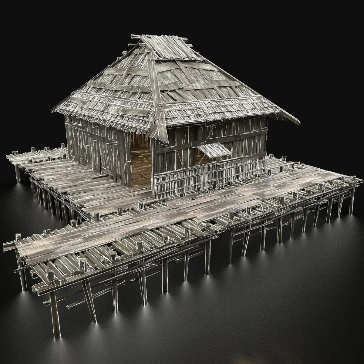 - Next gen, AAA quality, game-ready model of swamp wooden house.