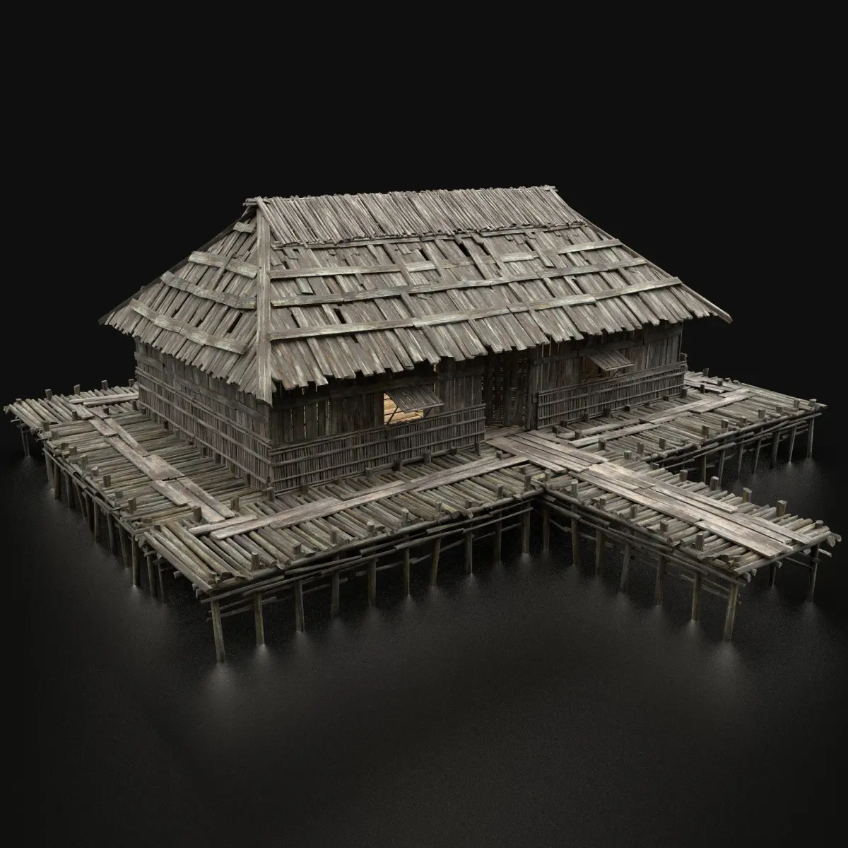 - Next gen, AAA quality, game-ready model of swamp wooden house.