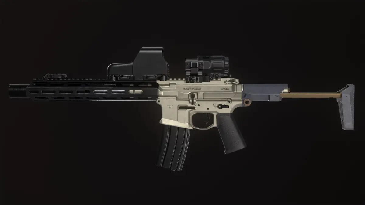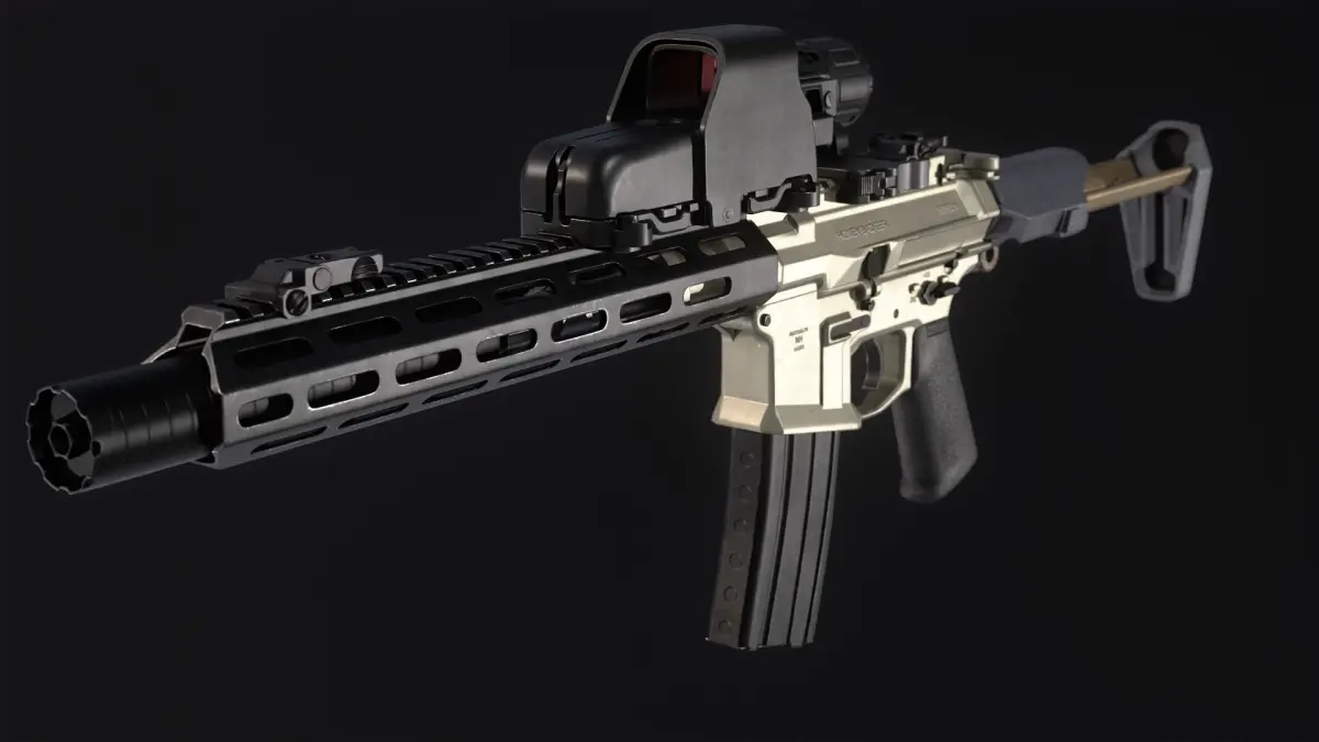 Low-poly Game-ready 3D model of the AAC Honey Badger Assault Rifle.