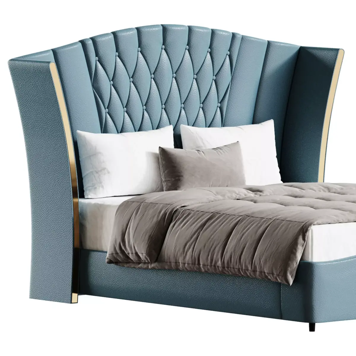 Tags: upholstered bed, modern bed, luxury bedroom, camerone style, winged headboard, tufted headboard, fabric bed, contemporary furniture, bedroom furniture, realistic bedding, interior visualization, architectural render, 3ds max model, fbx export, high poly model, premium furniture, soft upholstery, modern interior, bed design, furniture asset, detailed model