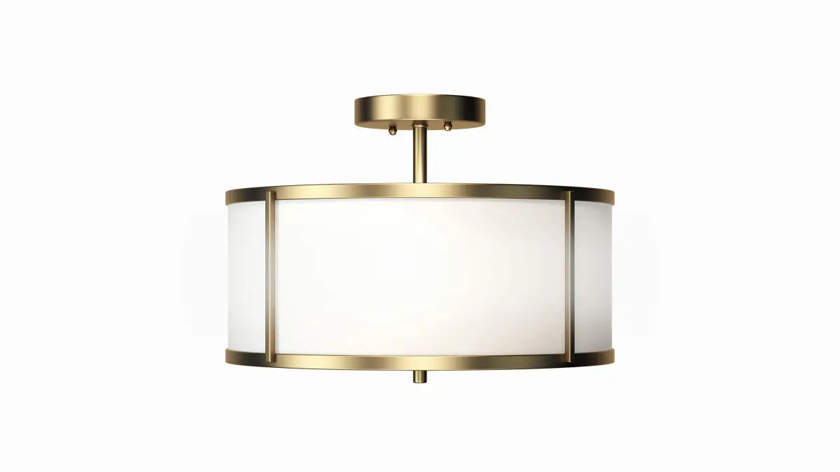 Sometimes recessed lighting looks out of place (especially in older homes) and chandeliers are too big for our short ceilings. That's where flush and semi-flush mounts shine! This drum-shaped semi-flush design features a round metal backplate and a slim downrod, which are made from metal and finished in a natural brass hue. A white fabric drum shade surrounds two bulbs of up to 60W (not included) to diffuse light throughout your space, and rounds out the look.