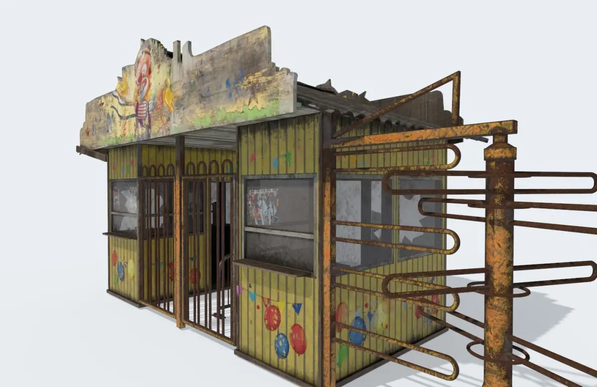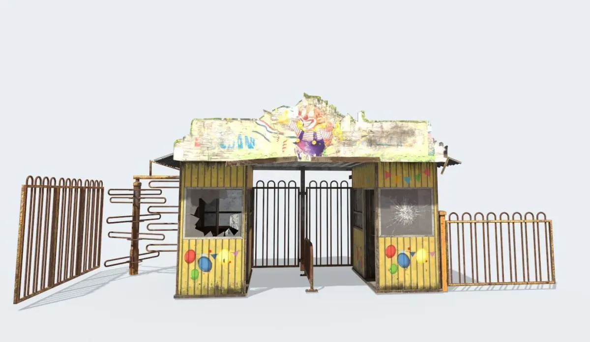 Model of Abandoned Amusement Park Entrance. Model is very realistic.It has 5 PBR material.Maps are diffuse-specular-glossiness-height and normal. Also, PBR Metallic-Roughness ( Basecolor-Metallic-Normal-Roughness-Height) workflow has been added. Model's textures has two sizes; 4096x4096-2048x2048. All maps are PNG formats and unwrapped, non-overlapping.