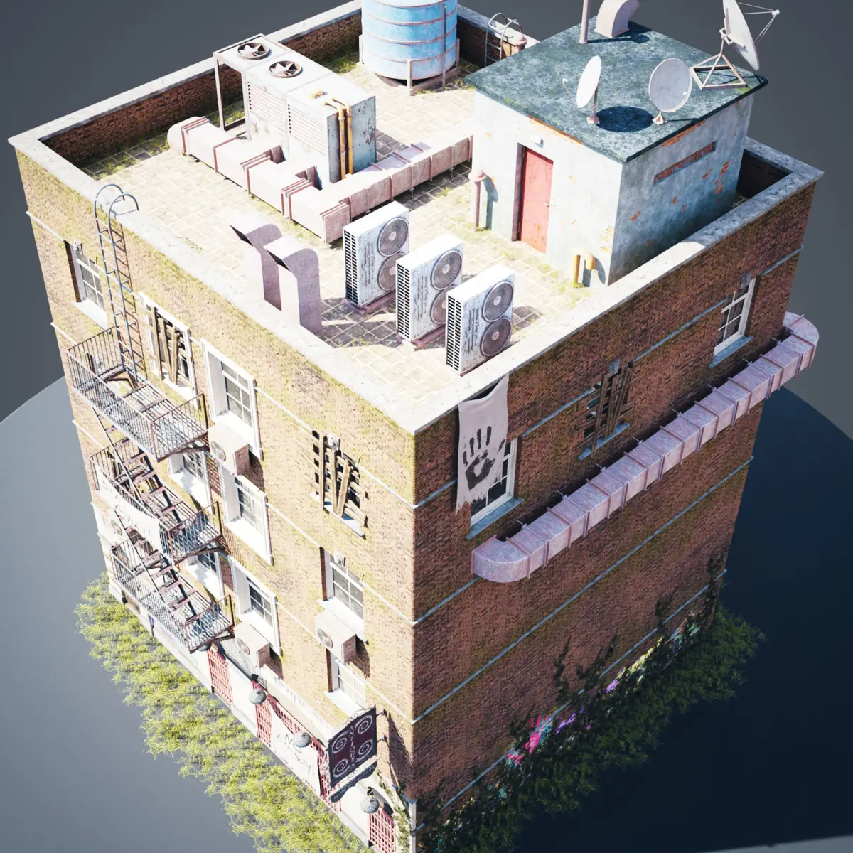 More types of buildings and modular kits will be added in the future as separate packs, so if you're looking for a complete collection of abandoned buldings, be sure to keep an eye out for more uploads coming your way. If you need any help using this pack, or would like to make some custom changes, feel free to contact me anytime, I'll do my best to respond as soon as I can.