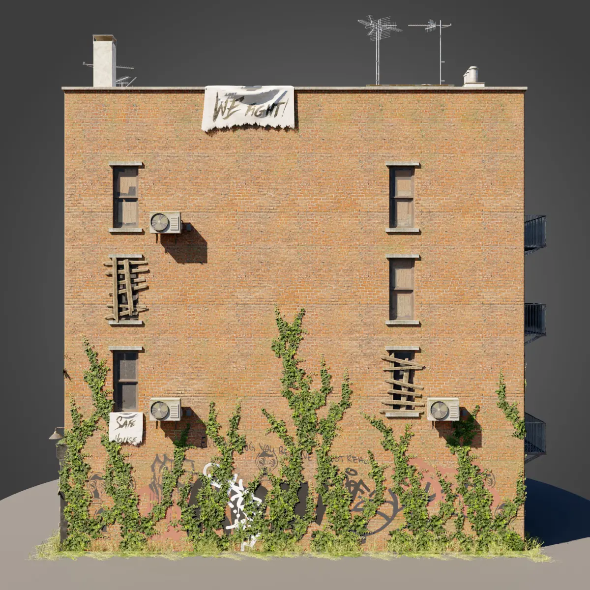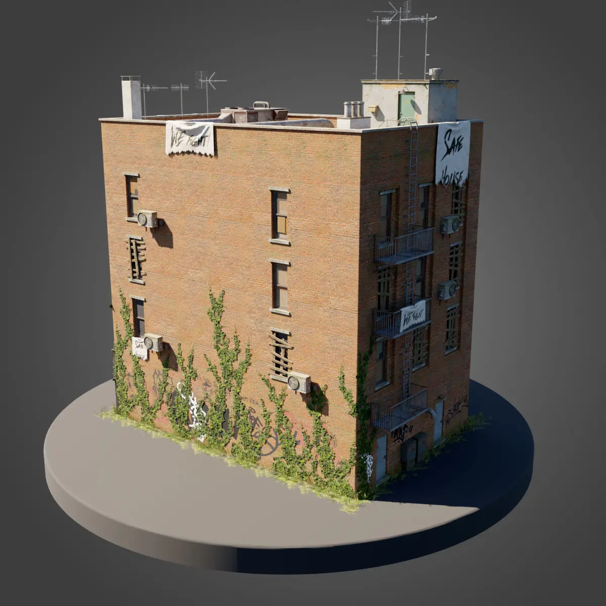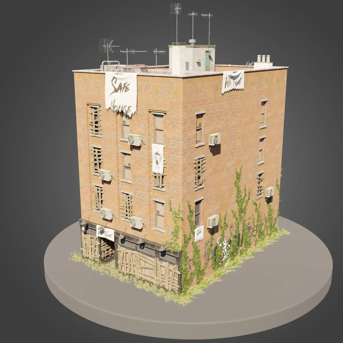 More types of buildings and modular kits will be added in the future as separate packs, so if you're looking for a complete collection of abandoned buldings, be sure to keep an eye out for more uploads coming your way.If you need any help using this pack, or would like to make some custom changes, feel free to contact me anytime, I'll do my best to respond as soon as I can.
