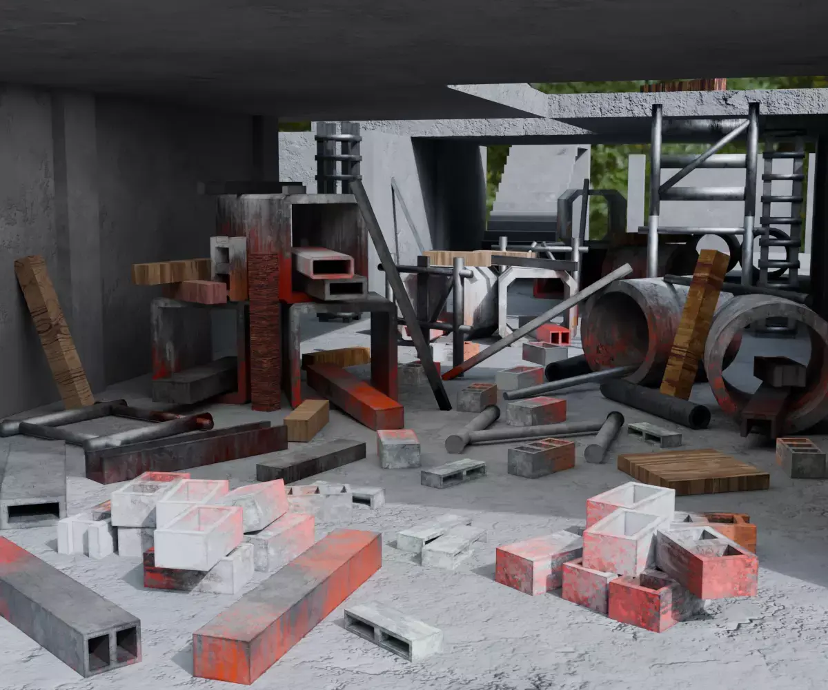 This 3D environment asset represents a derelict architectural structure designed for use in visualization, layout, and look development pipelines. The model contains a total of*3.821 VERTICESand **3.218 POLYGONS, optimized for **LOW-POLY APPLICATIONS* with attention to structural clarity and clean topology. Geometry is organized into multiple logically grouped objects with WELL-NAMED OBJECT LABELS, allowing for efficient scene navigation and modular usage. All assigned materials are systematically organized using WELL-NAMED MATERIAL SLOTS, and the associated texture sets follow consistent naming conventions for clarity across workflows.The asset includes TEXTURES with resolution of 4K MAPS FOR MAIN STRUCTURAL ELEMENTS and 2K MAPS FOR SUPPORTING PROPS, suitable for rendering pipelines that require both resolution balance and asset portability. All texture sets are in PBR FORMAT, with coverage including COLOR MAPS AND NORMAL MAPS, while some props use only color maps where surface complexity is minimal. No displacement, roughness, or AO maps are included, and the model does not contain rigging, animation, skeletal data, or physics simulation. MAIN STRUCTURE ARE 12 AND PROPS ARE 41 UNIQUE MESHScene file not includes HDRI ENVIRONMENT LIGHTING, as well as a basic LIGHTING SETUP AND CAMERA RIG configured for immediate test rendering. The environment is fully READY FOR VISUALIZATION, RENDERING, and STATIC SCENE ASSEMBLY, with no external dependencies or plug-ins required. File structure is clean, origin-aligned, and scale-consistent.This asset is intended for use in CINEMATIC ENVIRONMENT MOCKUPS, GAME BLOCKOUTS, or CONCEPTUAL ARCHITECTURE R&D, where structural form and decayed atmosphere are required without high system load or heavy post-processing