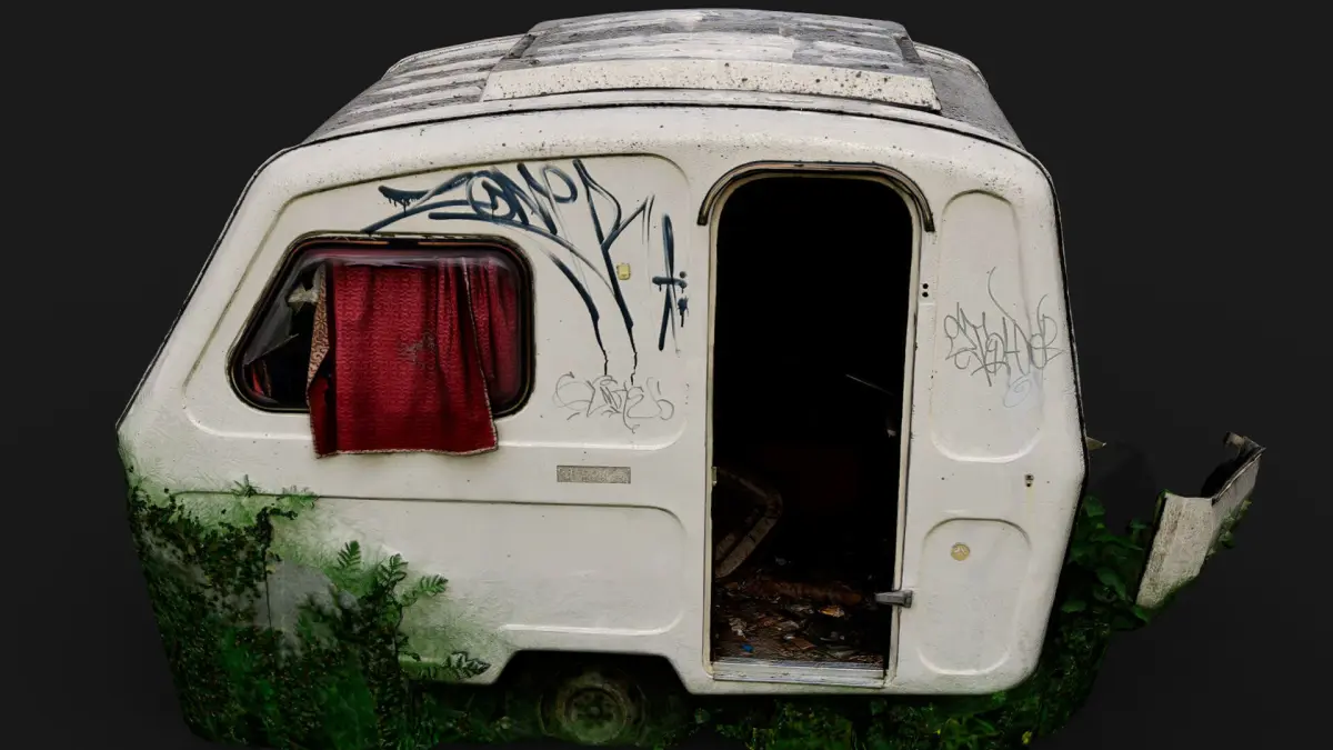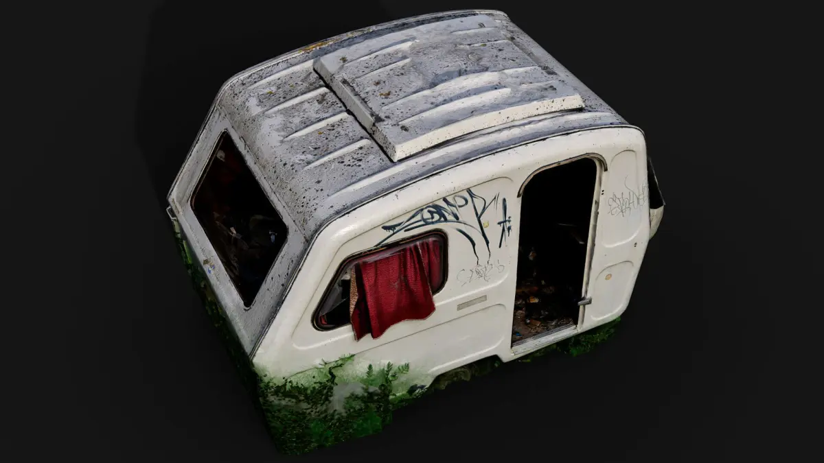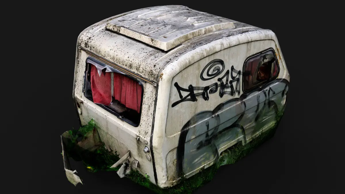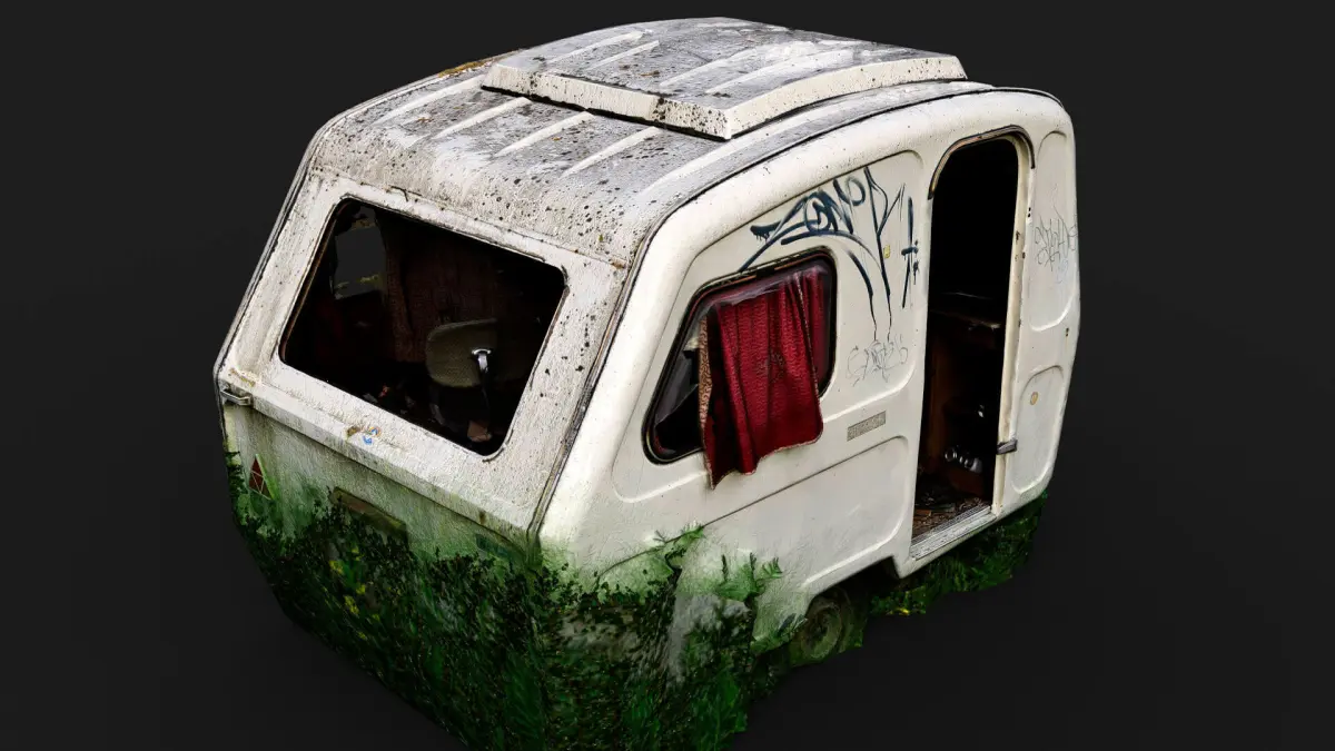 abandoned camping car booth postapo wreck PBR photogrammetry Low-poly 3D model