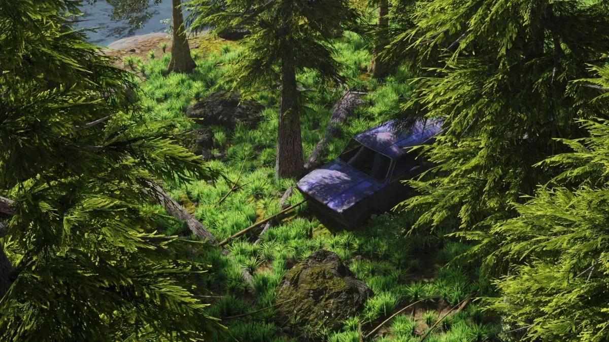 Abandoned Car in Forest Scene Made In Blender3D v2.91.