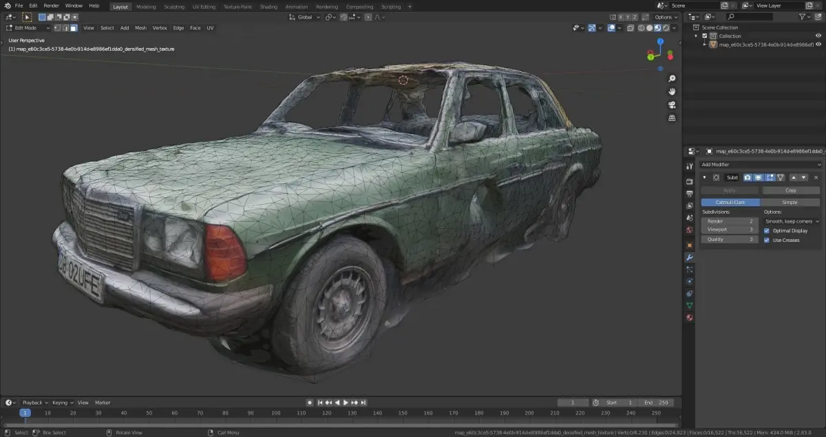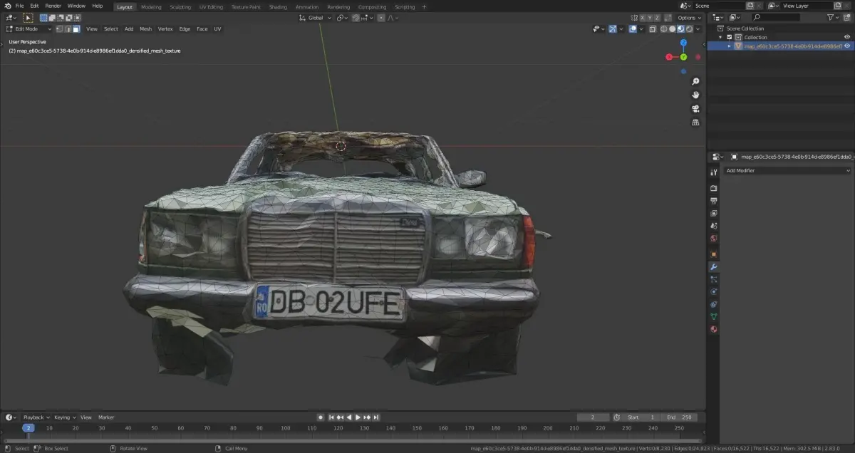 Abandoned car photoscanned with 8k texture LOW-POLY Low-poly 3D model