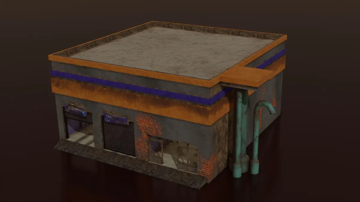 An old abandoned car repair service with its own history and value, stylized but spoiled by schoolchildren who painted it with various graffiti. Atmospheric and cool 3D model. Wireframe was shown on yt vid