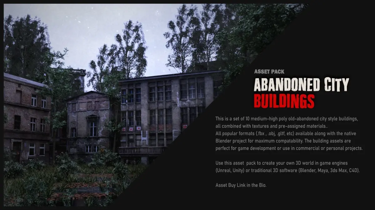 - Use this asset pack to create your own 3D world in game engines (Unreal, Unity) or traditional 3D software (Blender, Maya, 3ds Max, C4D).