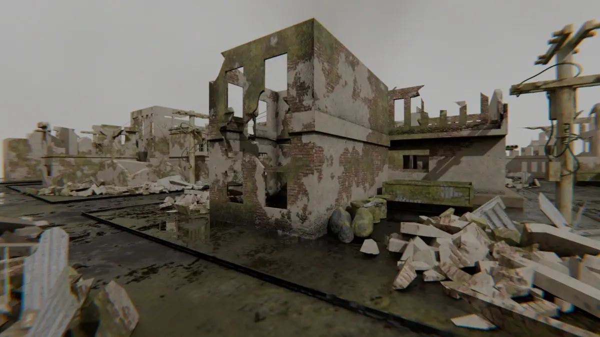 Featuring PBR textures, the environment showcases lifelike details such as cracked concrete, rusted metal, shattered windows, and moss-covered surfaces, adding depth and authenticity to every corner. The carefully arranged structures and atmospheric lighting create a deeply immersive post-apocalyptic setting, perfect for storytelling, survival games, or dystopian worlds.