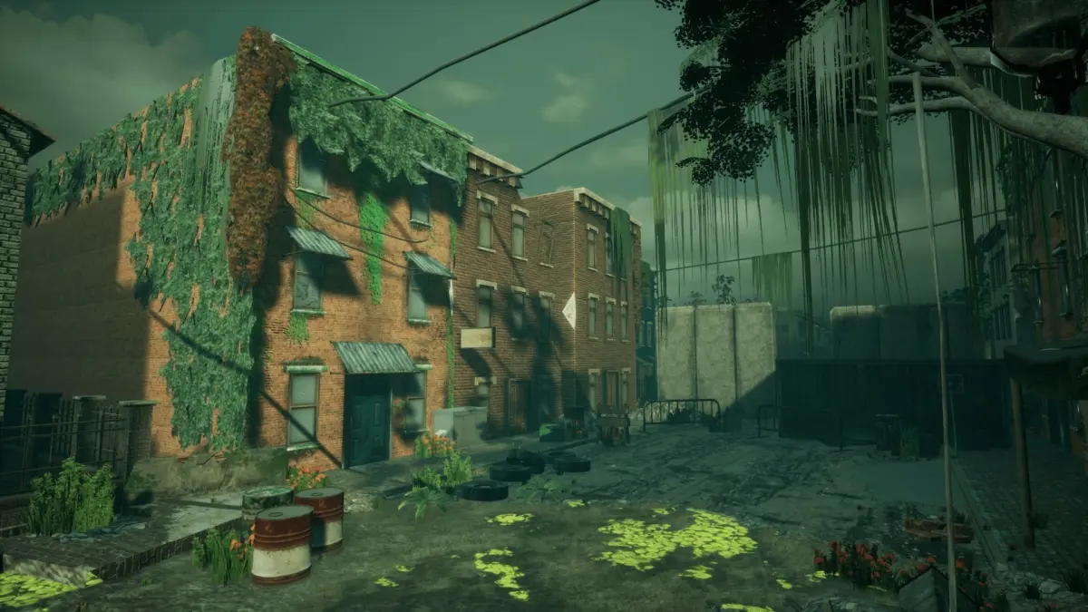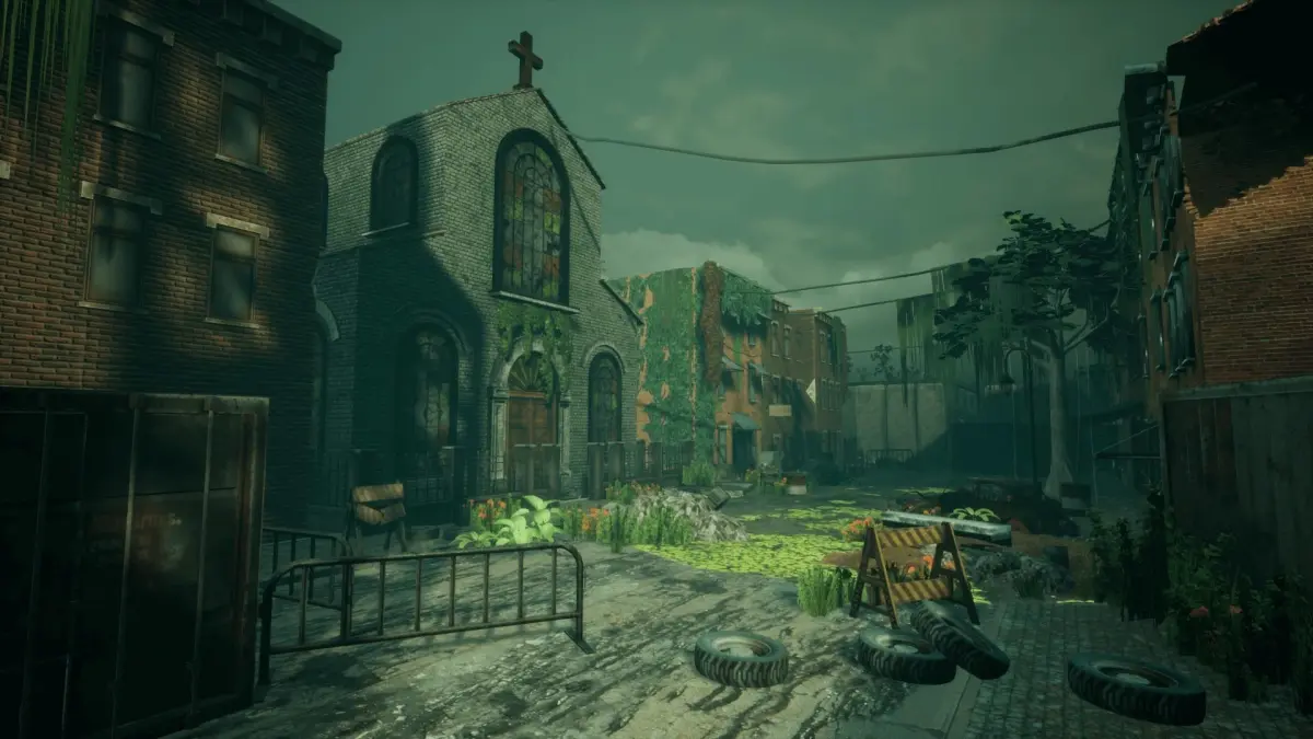 Abandoned City FULL scene with over 100 prefabs for Unreal Engine, including: city and street props, industrial buildings, houses, roads, church, barrels, plants, trees and others.