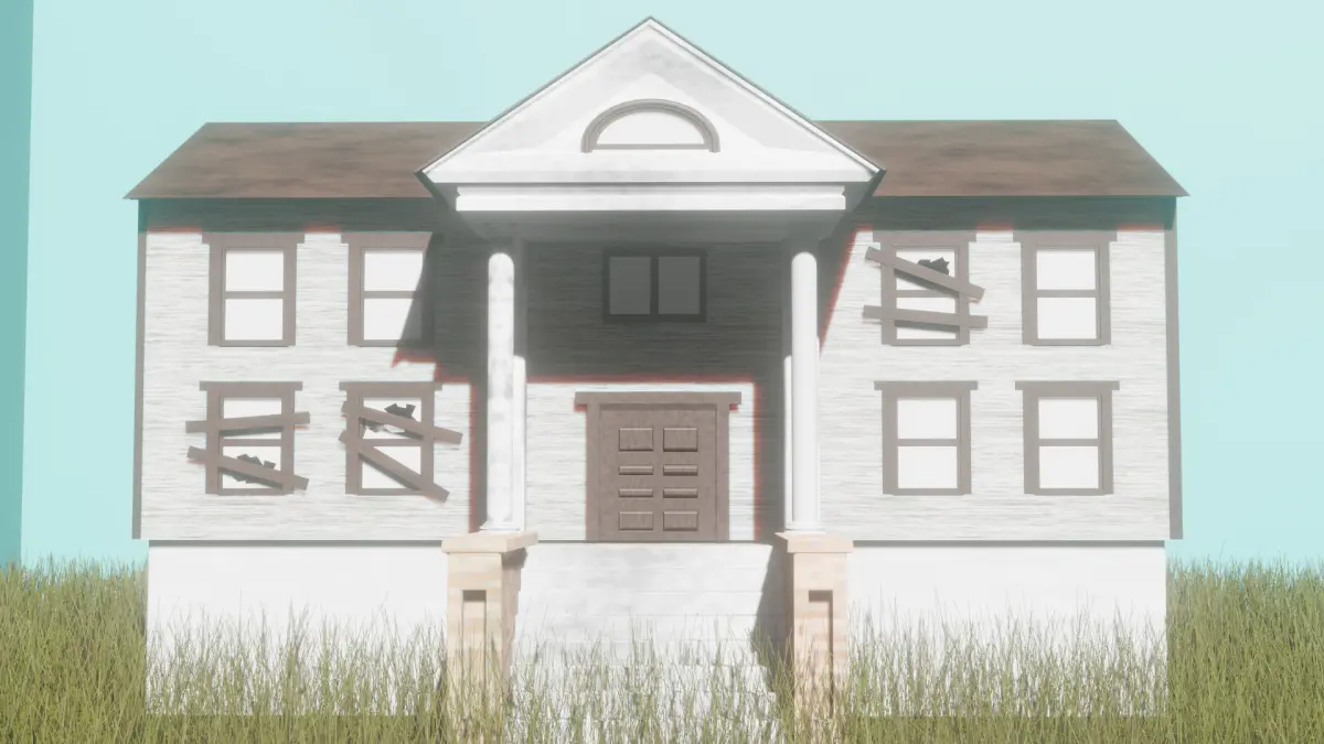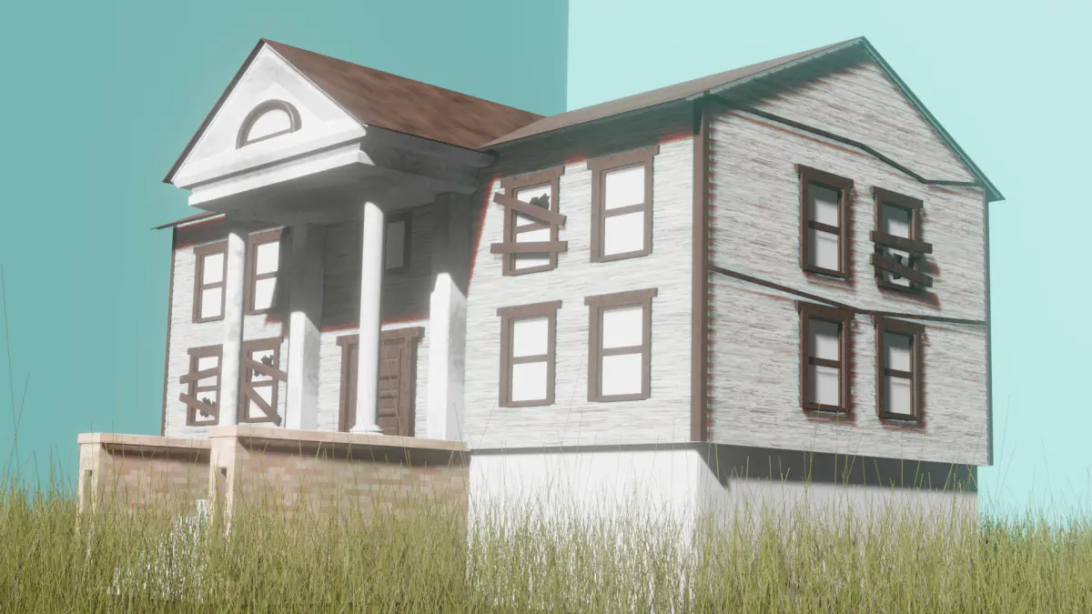 This is a detailed 3D model of an abandoned house exterior, inspired by the historic Rockwell House in Milledgeville, Georgia. Perfect for game environments, architectural visualizations, or film projects that require a realistic, eerie building.