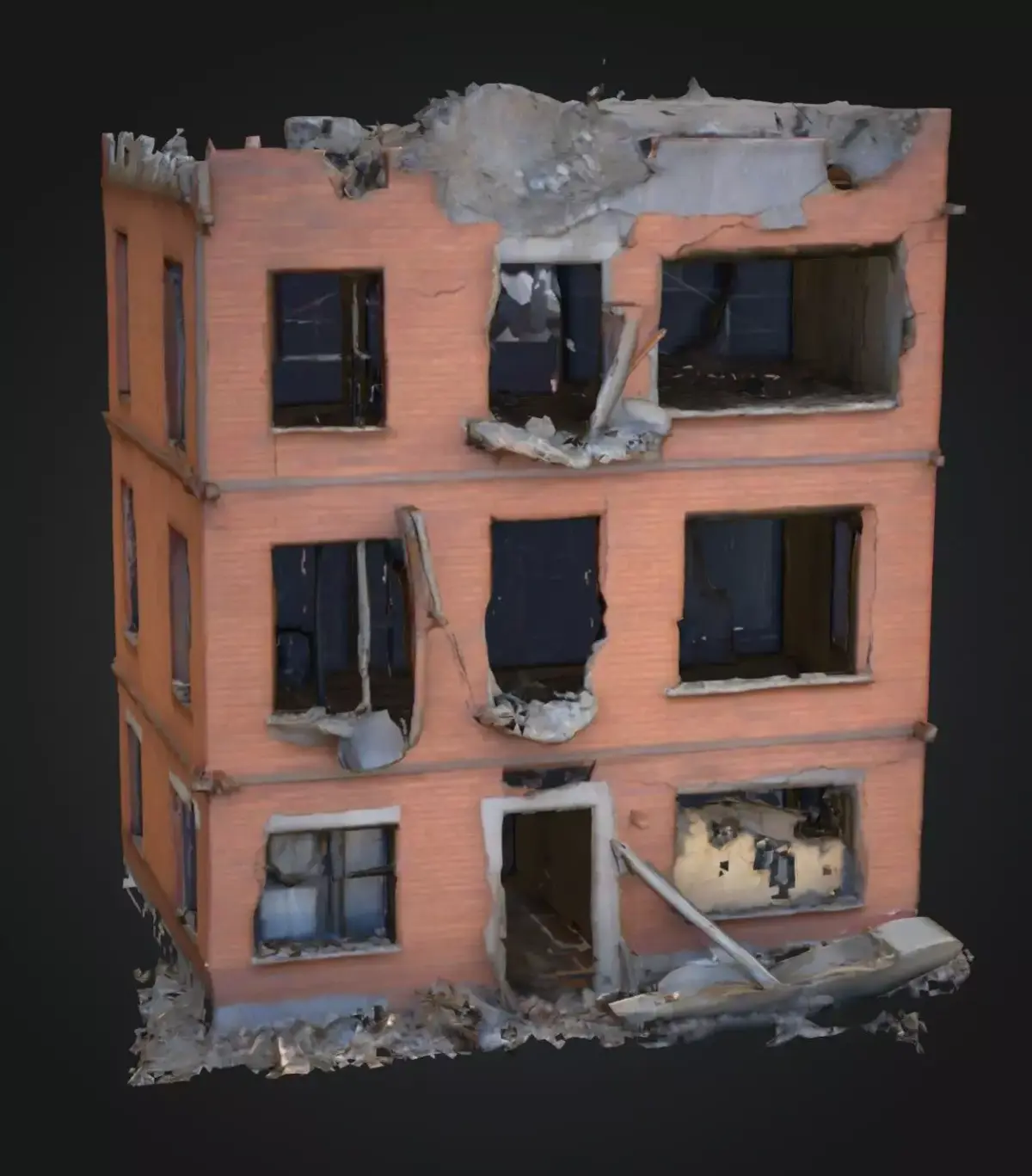 Urban abandoned factory 3D model covered with graffiti and vegetation. Perfect for modern ruin scenes, survival games, or cinematic city storytelling. Includes mid‑poly mesh, realistic vegetation growth, and weathered wall textures for Unity, Unreal, or Blender.