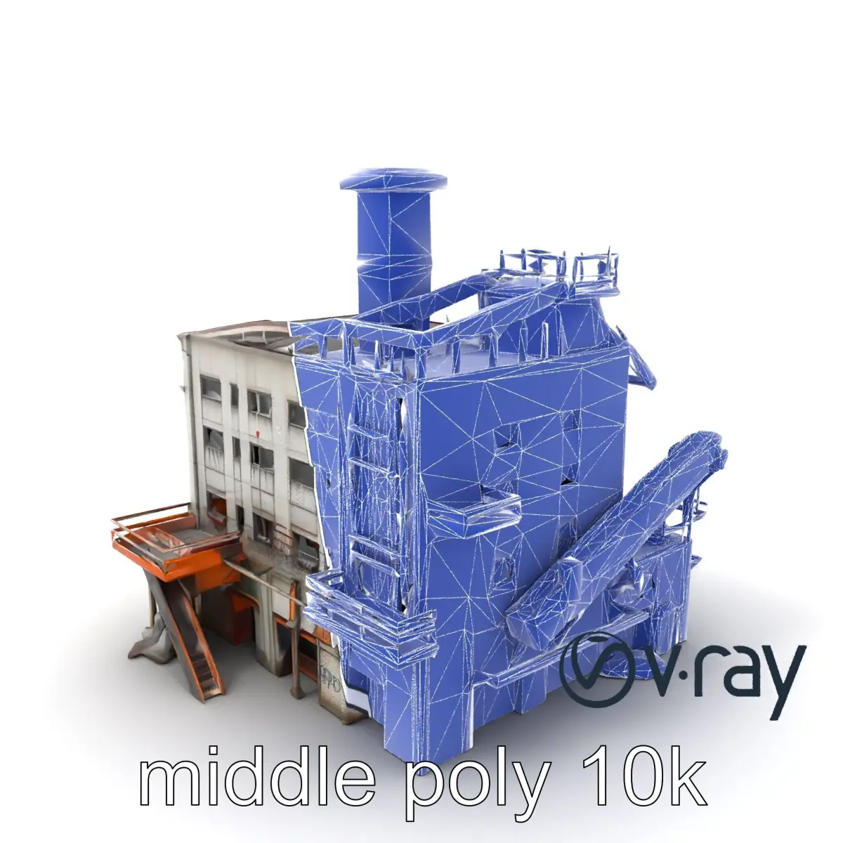 Each model has 3 levels of detail: low-poly, middle-poly, and high-poly, which allows for the use of this model in production rendering (such as 3ds max, Maya, Cinema4D, Blender, Vray/Corona/Cycles, and all other), game engines (Unity and Unreal compatible), and interactive presentations, providing a choice of detail based on the LOD System principle. This model is ideal for creating post-apocalyptic environments, industrial simulations, and urban exploration games.