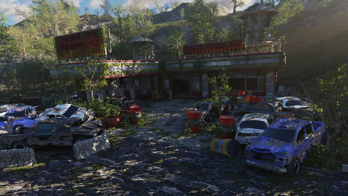 Abandoned Gas Station Scene Made In Blender3D v3.3