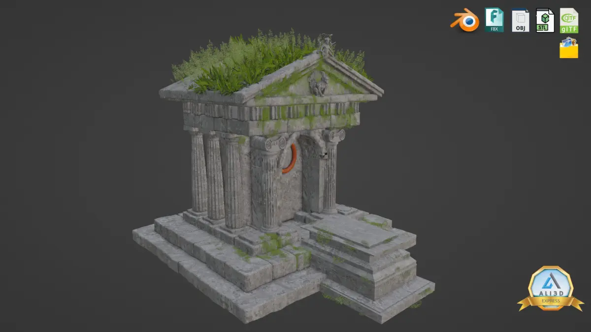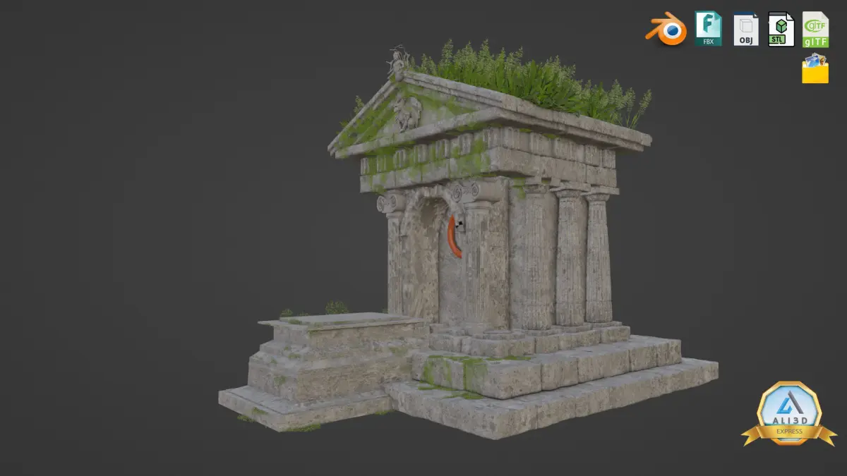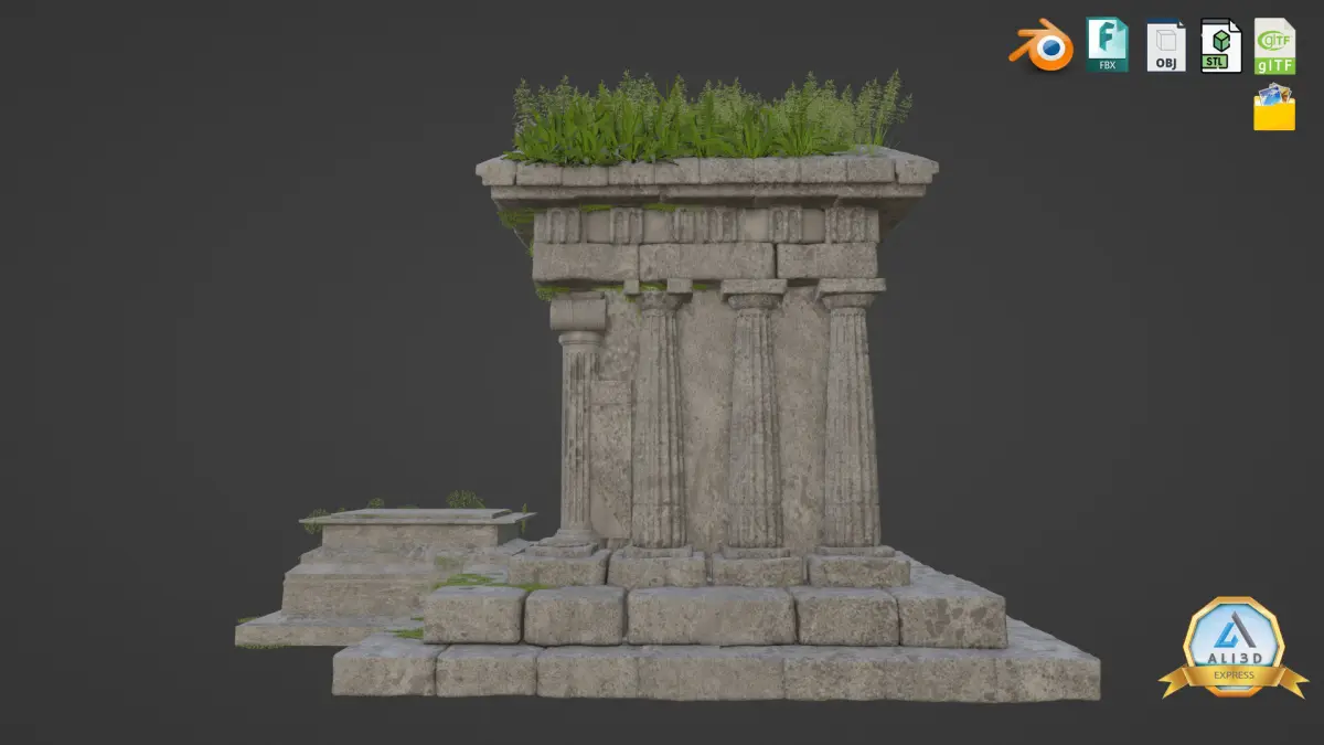 Abandoned Greek Temple - Ancient Architecture 3D Model.Complete Download Package Includes: -Blend File -FBX -OBJ -STL -GLB -PLY -Textures (Color, Normal, Roughness & More)