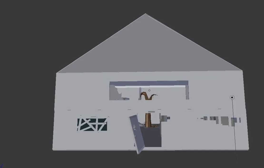 This is an abandoned decaying house. Its walls and ceilings are falling apart and a tree has broken through the floor. in the 2nd floor's ceiling there is a dead person's leg sticking out. There aren't many textures and most things were not UV wrapped.