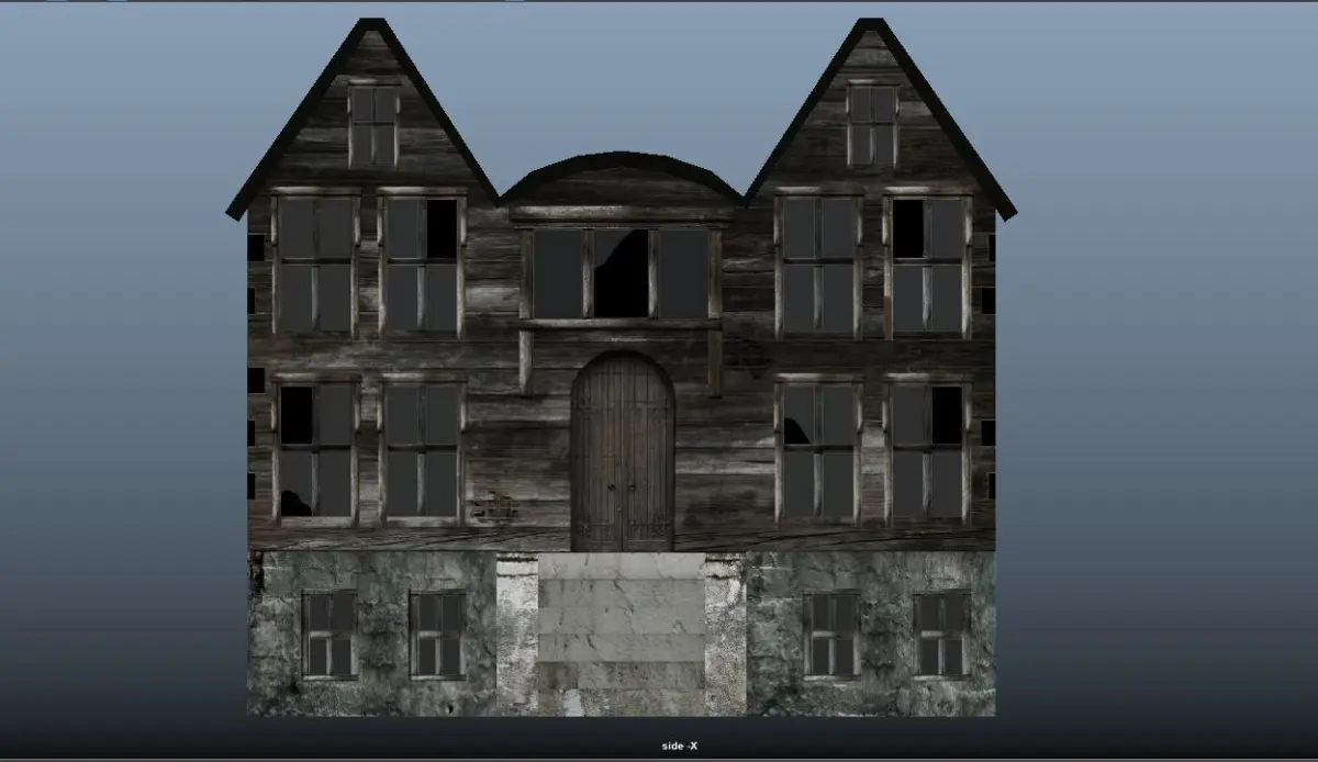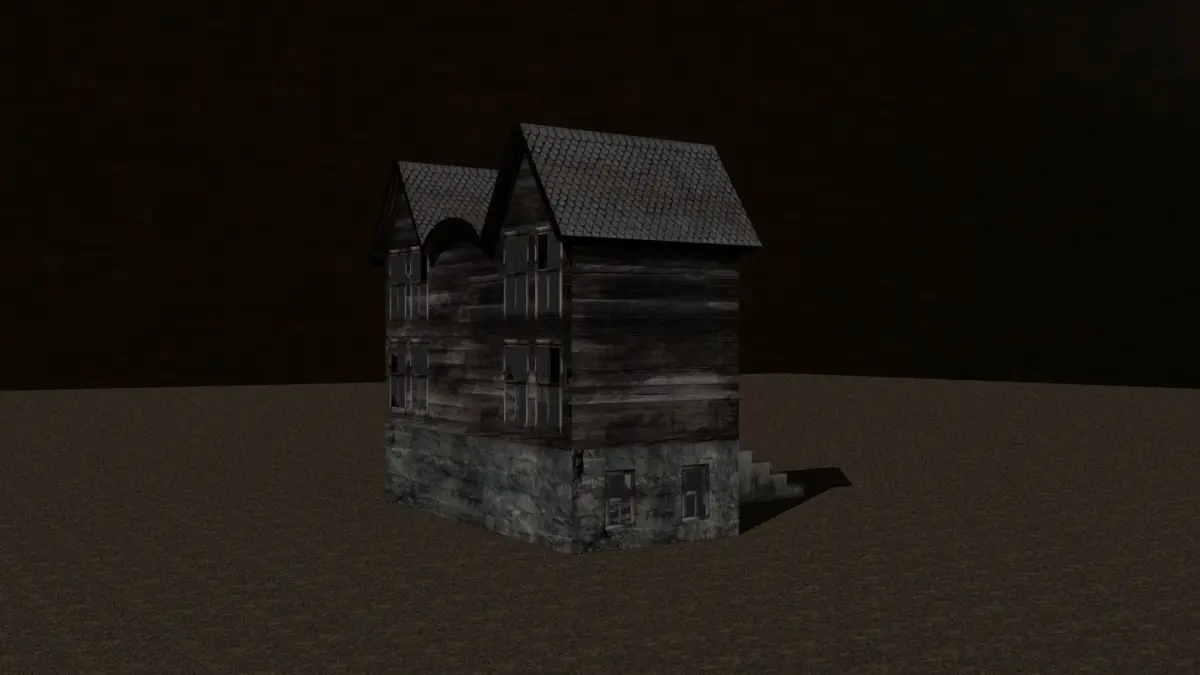 This is a model of an abandonded house, it is optimized becasuse it has few polygons. This model has all textures and displament map.