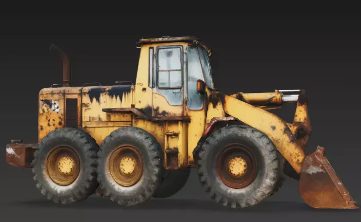 The Overall Concept This asset is a massive wheel loader, a heavy earthmoving machine typically used in mines or quarries. It is depicted in a severely abandoned state, making it a perfect centerpiece for a post-apocalyptic world or a deserted industrial zone.