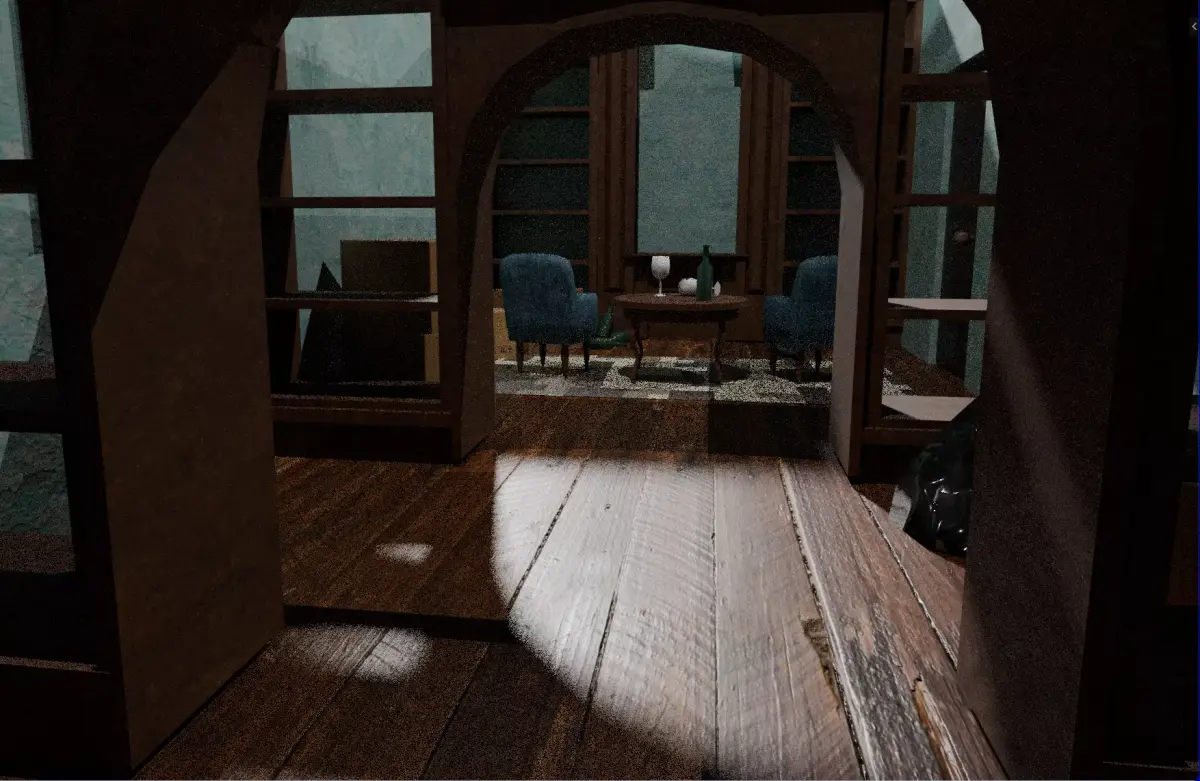 it includes a bathroom, living room, library, basement, studio, 2 bedrooms, a kitchen, secret rooms, a music room, and a trophy room.it has a bit of a modern style. the outside of the manor is 2449 faces1rst floor is 26837 faces2nd floor is is 16130 facesbasement is 22528 facesthe fence is 482 faces