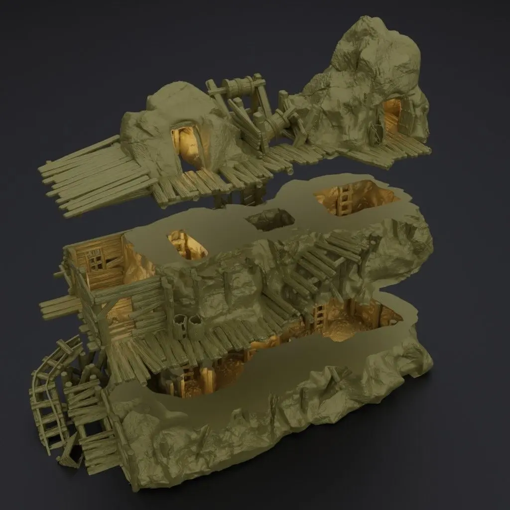Abandoned Mine Adjusted to 28 mm miniatures Inside can be playable FDM Print preferred (Gray good ) No need to slice adjusted to Ender 3 pro v2 standarts