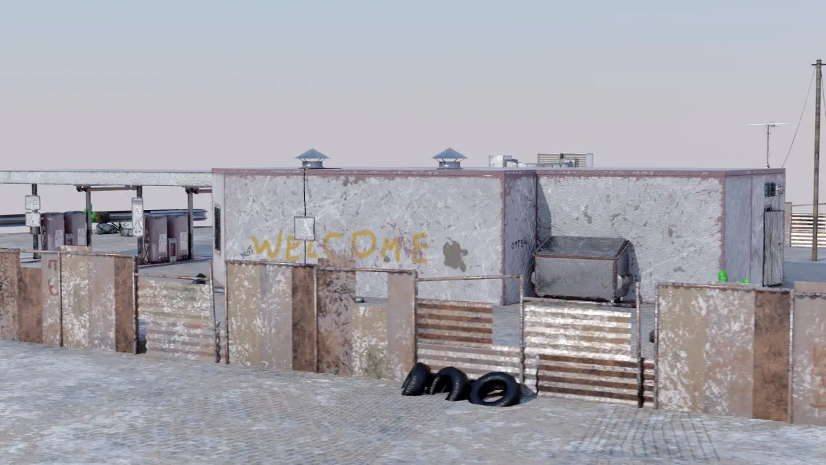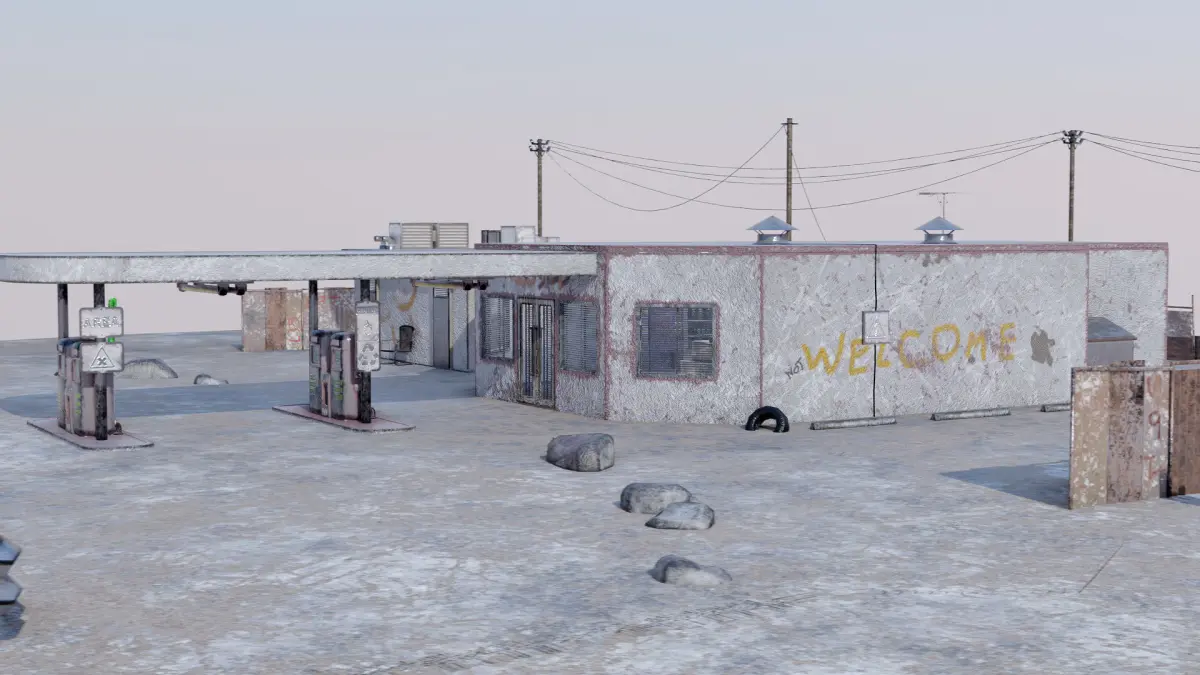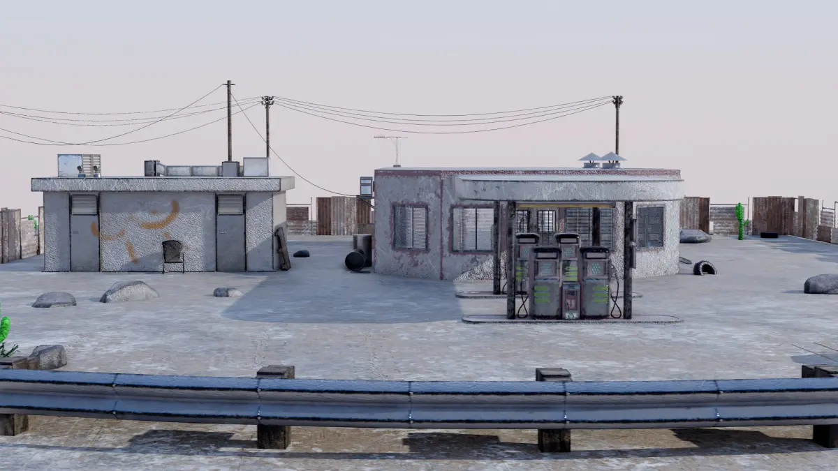 Abandoned Petrol StationRelevant to American road petrol stations.UV Unwrapped and textured. Comes with textures at 2k and 4k resolution.