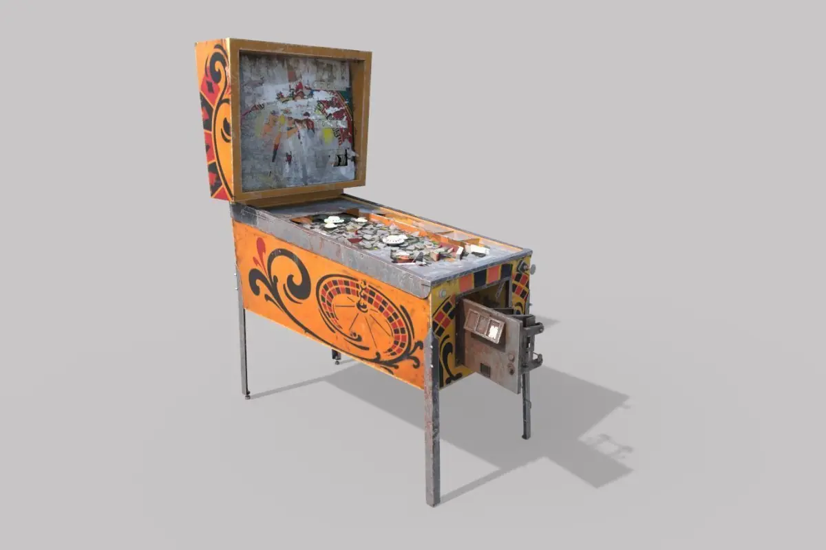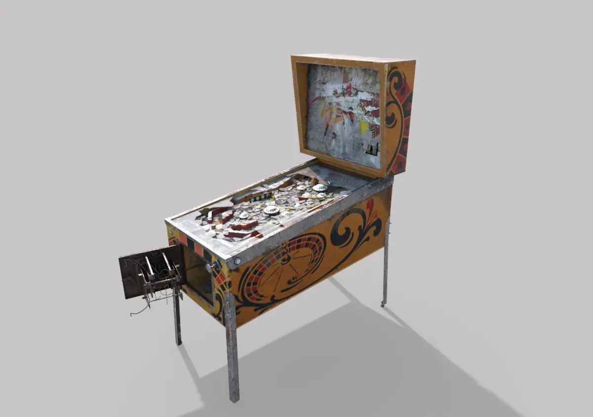 Model of old Pinball Machine. Model is very realistic. It has 6 PBR material. Maps are diffuse - specular - glossiness - height - opacity and normal. Also, PBR Metallic-Roughness ( Basecolor- Metallic- Normal-Roughness- Height and Opacity ) workflow has been added. Model's textures has two sizes; 4096x4096-2048x2048. All maps are PNG formats .