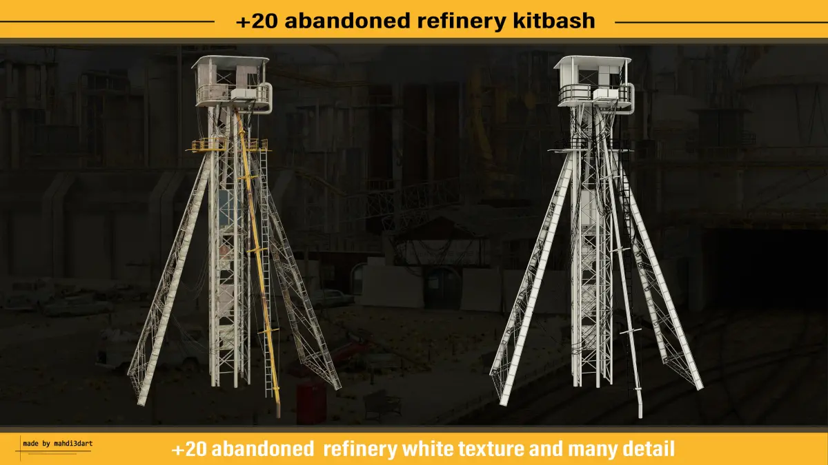 abandoned refinery kitbash +20 abandoned refinery kitbash a great pack for creating abandoned refinery environments Made in Blender 3.5 and unwrapped (without packaging) All files are in a zip file