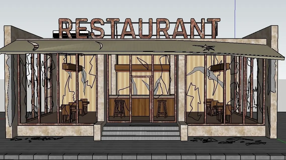 Abandoned RESTAURANT MODEL. THE 75m² AREA AND 4m HEIGHT BUILDING WAS MODELED IN AN Abandoned Image. COATING FILES ARE INCLUDED. IMAGES AND VIDEO HAVE BEEN UPLOADED FOR EXAMPLE. THE REQUIRED FILE FORMATS ARE ALSO AVAILABLE. YOU CAN USE THIS MODEL IN YOUR PROJECT, MOVIE OR GAME SCENES YOU WANT. THANK YOU FOR YOUR INTEREST. PLEASE DON'T FORGET TO LIKE AND COMMENT.