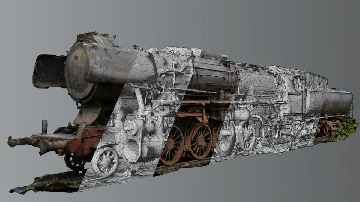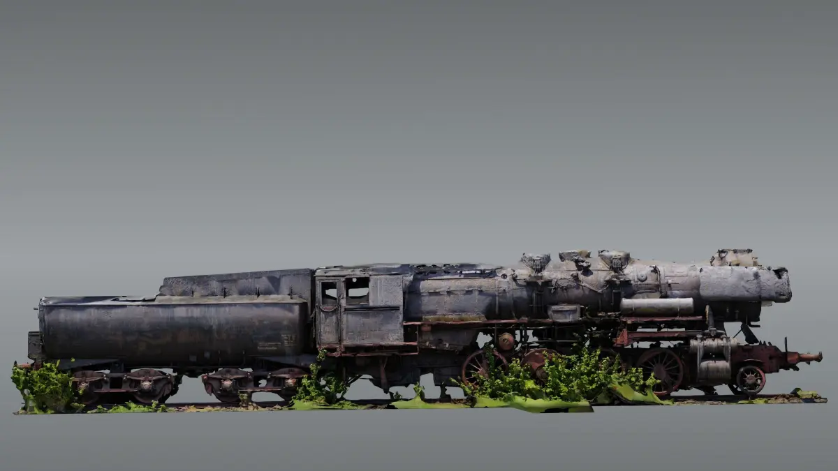 Model of an abandoned rusty steam locomotive. Model is rather low poly with ~ 58.000 vertices for a model this detailed. Diffuse and normal map in 16K, roughness and ao in 4K, all in JPEG format.