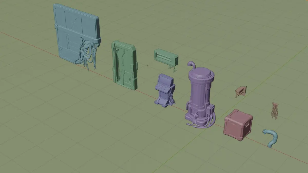 Perfect for creators building sci-fi, dystopian, or post-apocalyptic interiors, with a focus on modular layout and manual scene assembly.**this kit made by non free Ai Generator and retexture in blender and is ready for game , and interior What’s Included:10 individual game-ready 3D models: