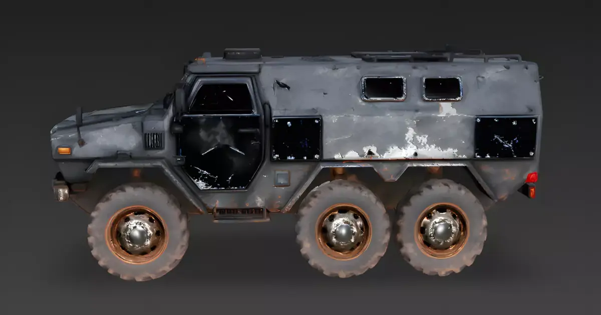 The Overall ConceptThis 3D model represents a heavy-duty, multi-axle abandoned urban Armored Personnel Carrier (APC) designed with a gritty, post-apocalyptic aesthetic. It features a long, boxy fuselage and an intimidating six-wheel drive chassis, making it a perfect center-piece for wasteland dioramas or urban survival game environments.