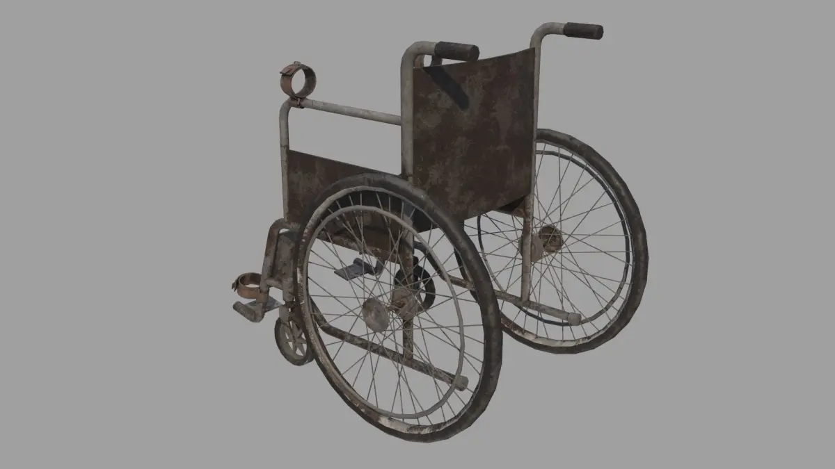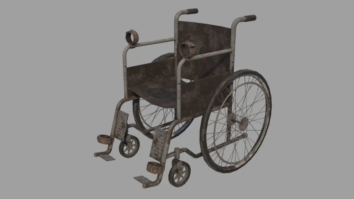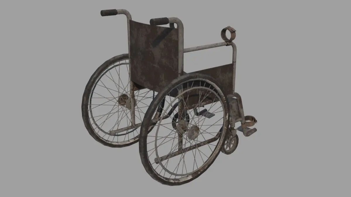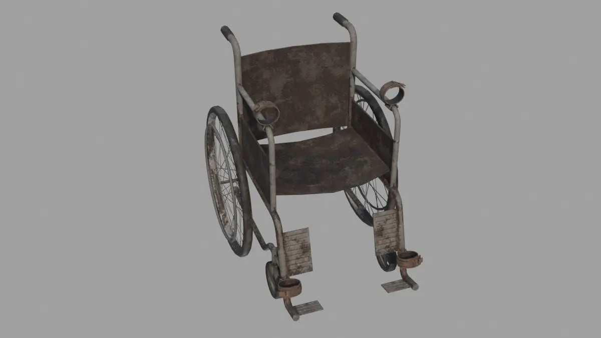 Game-ready model of Abandoned Wheelchair for post apocalyptic or horror scenes.