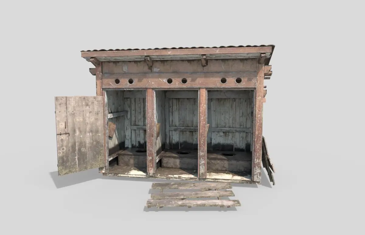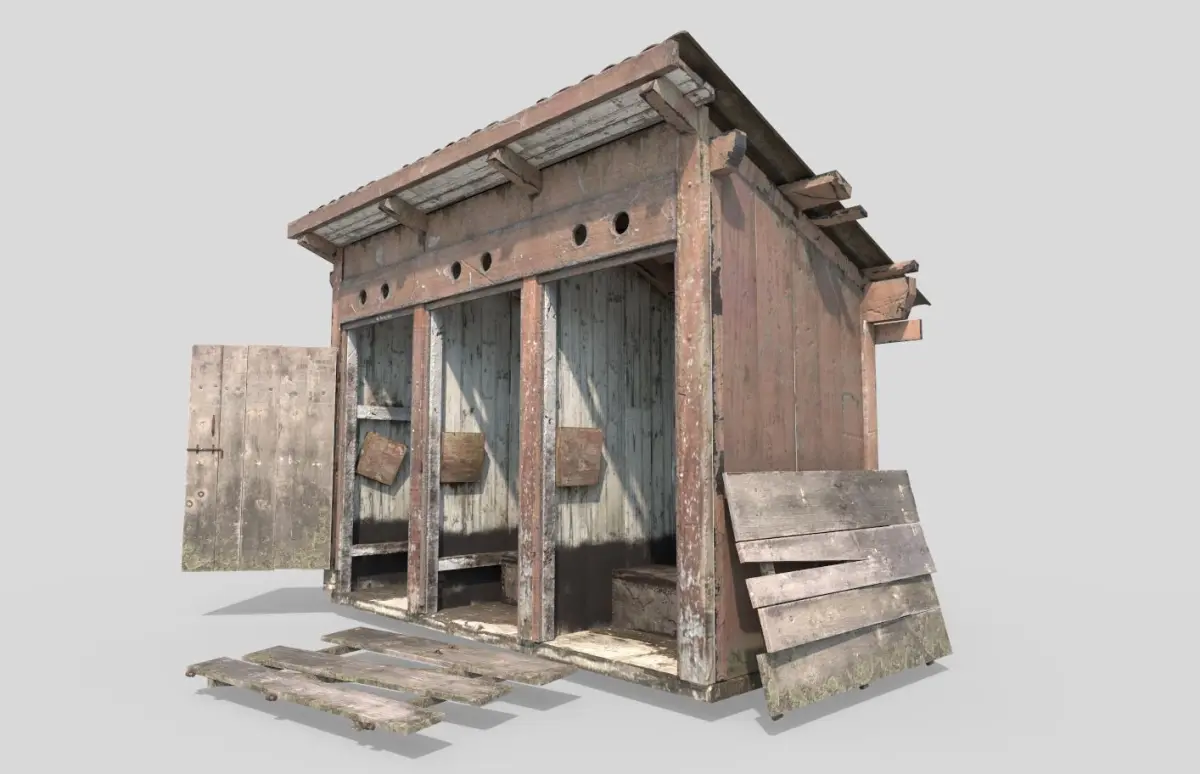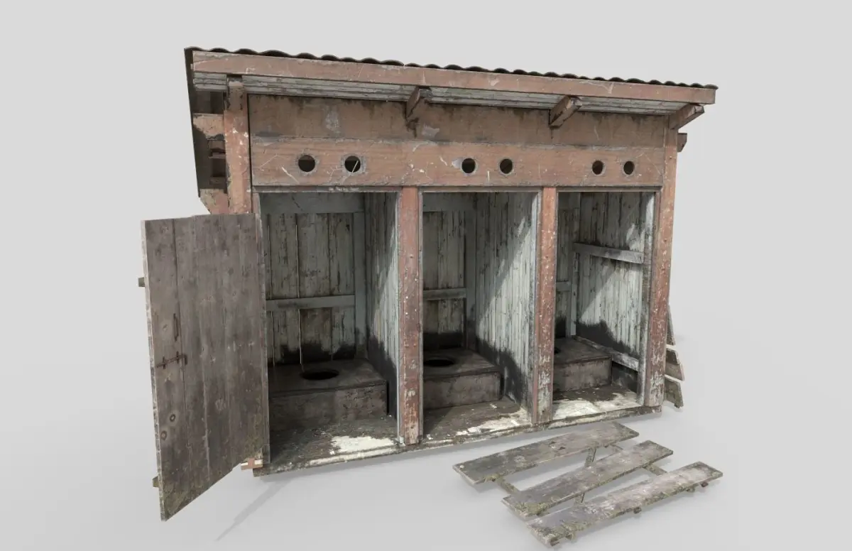 Model of abandoned wooden toilets . Model is very realistic. It has 6 PBR material.Maps are diffuse-specular-glossiness-height and normal. Also, PBR Metallic-Roughness ( Basecolor- Metallic- Normal-Roughness- Height ) workflow has been added. Model's textures has two sizes ; 4096x4096 - 2048x2048. All maps are PNG formats .